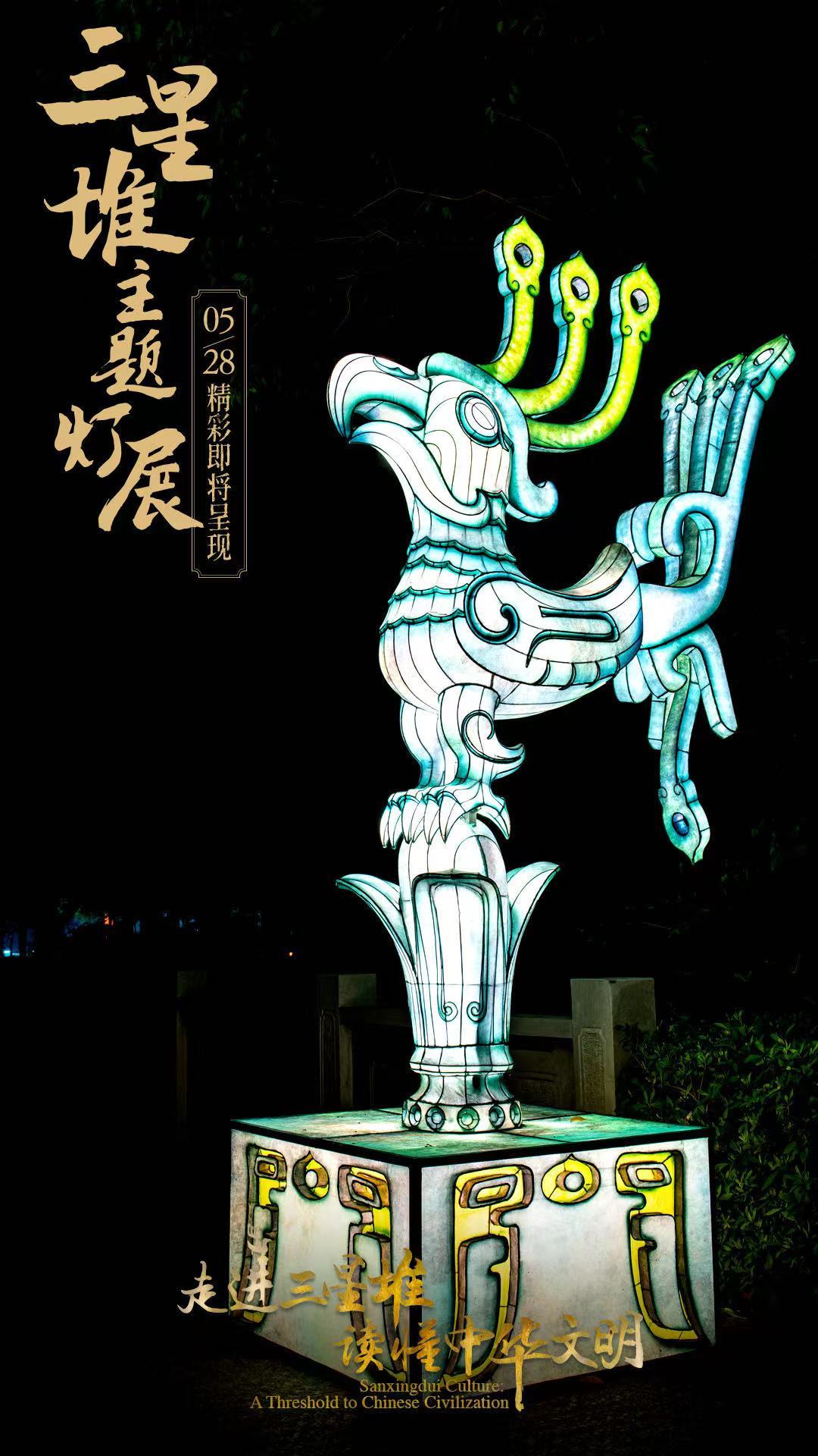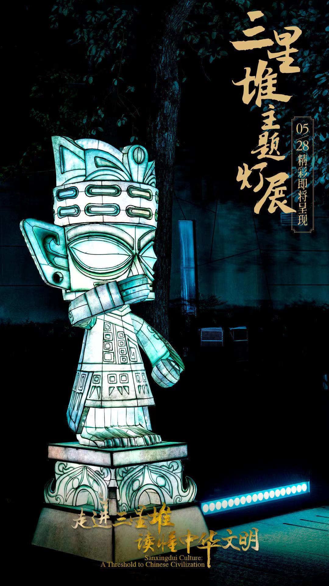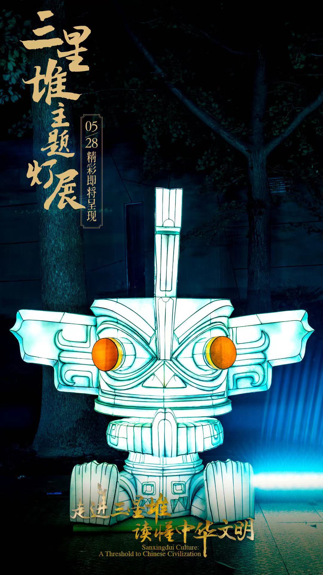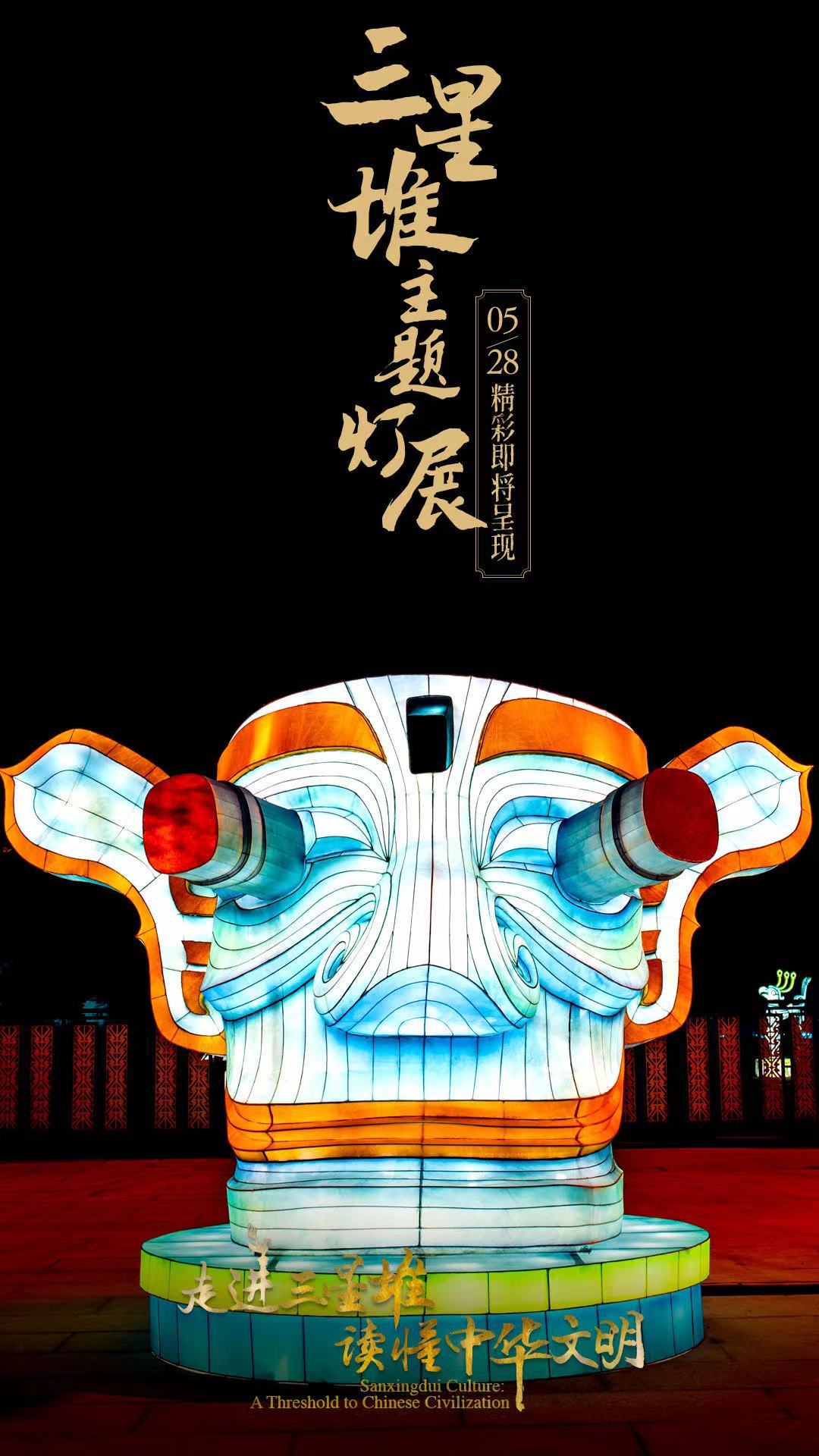 5月28日,国务院新闻办公室、国家文物局、四川省人民政府将在四川省广汉市的三星堆博物馆联合举办“走进三星堆,读懂中华文明”主题活动。由中青旅联科策划、自贡灯贸集团倾力打造的“三星堆奇妙夜之古蜀之门”沉浸式主题灯展,营造出一个如幻如梦的古蜀胜境。