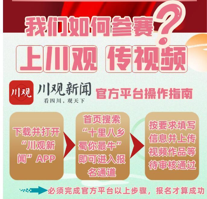 1、在川观新闻报名,快手、抖音加话题#我爱我家我代言#,拍摄短视频,描摹大美蜀乡的五彩画卷、记录自办文化的蓬勃热潮、展示文化传承的生生不息、讲述美好生活的幸福场景。