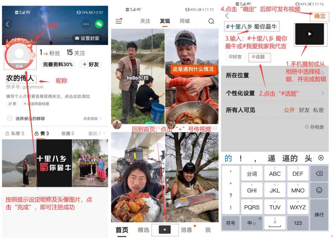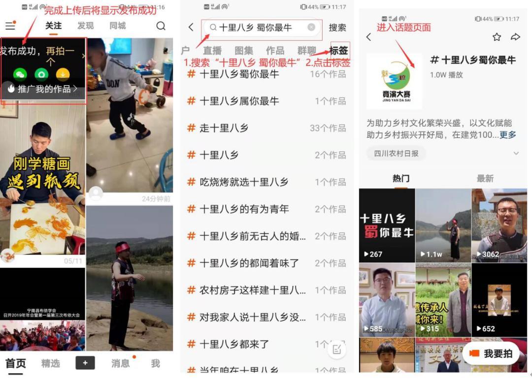 2、文化能人在川观新闻报名,在快手加话题#十里八乡蜀你最牛#。