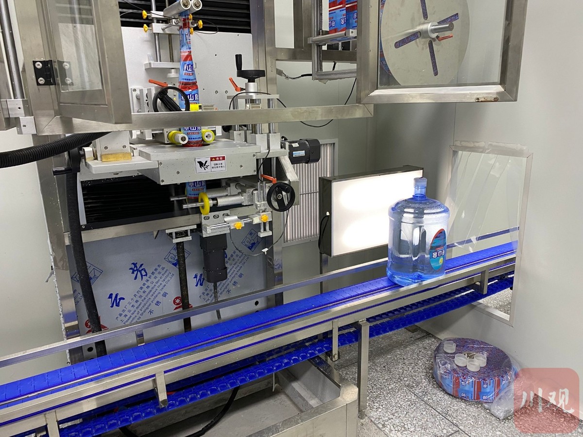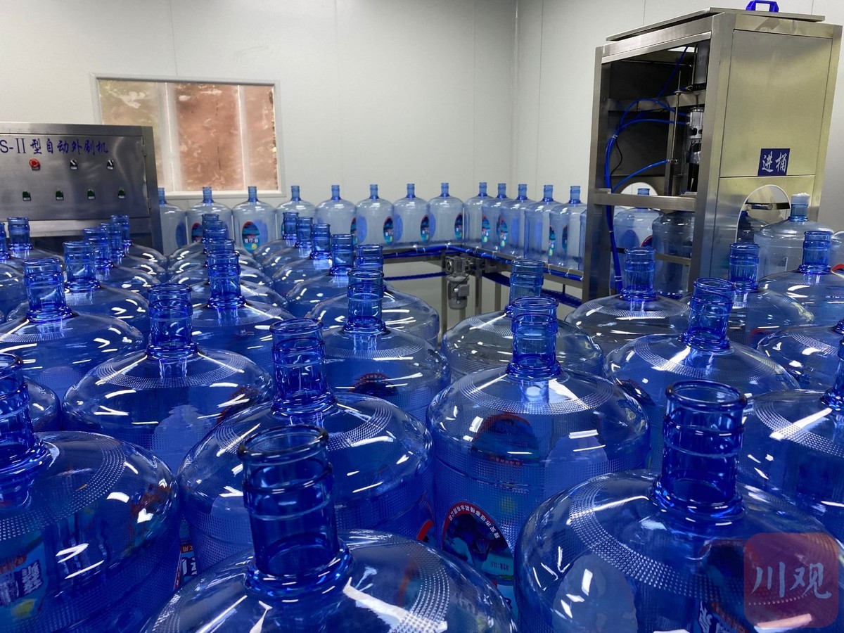 5月26日上午,雅安市雨城区大兴街道大寨村蔡山泉水厂内机械声“隆隆”作响,全自动化生产的桶装水被贴上标签送下生产线,数名工人将其整齐地堆放在库房,等待装车。