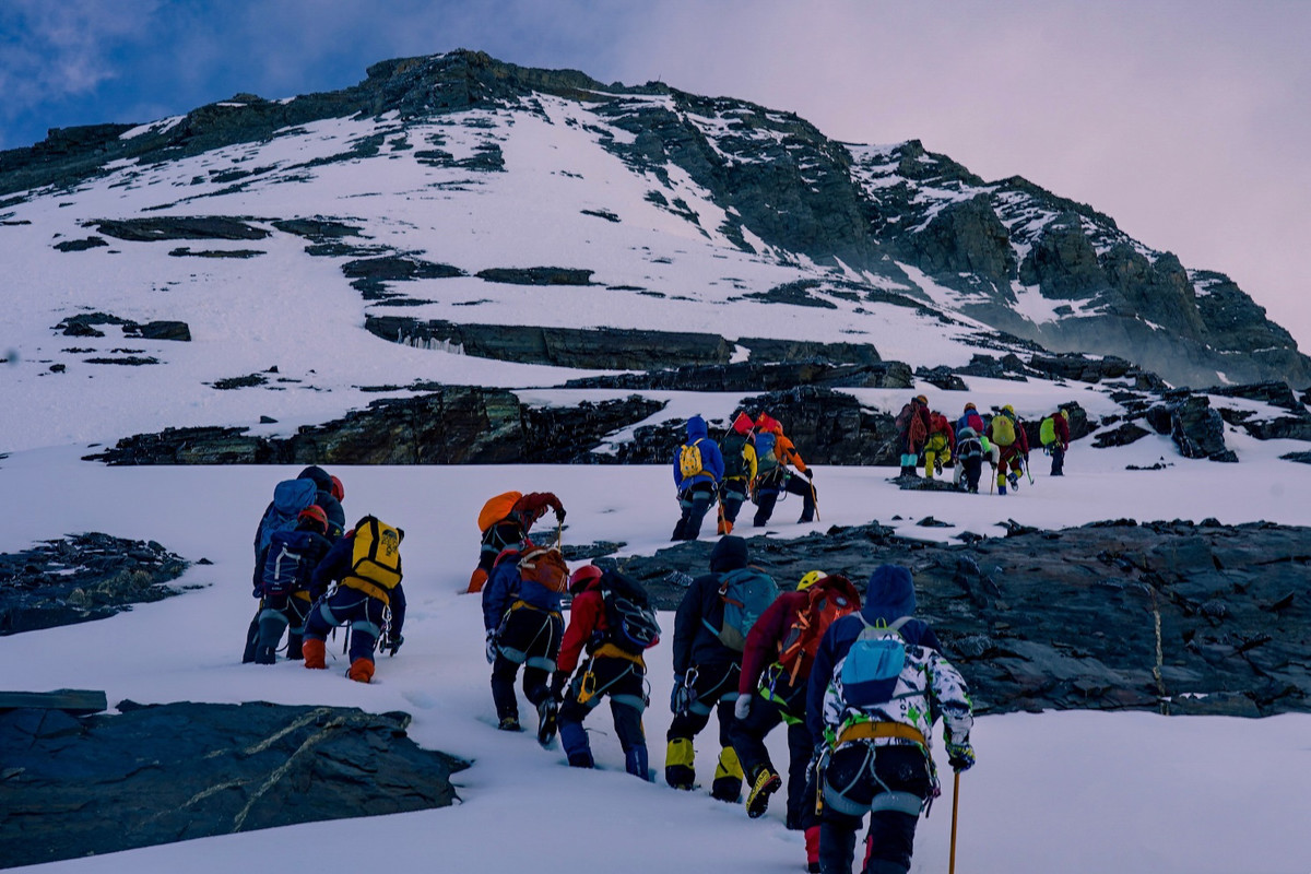 5月25日当天,百名四川旅游学院师生分成三组,同时攀登了四姑娘山大峰、二峰、三峰献礼建党百年华诞。四川旅游学院教授,四姑娘山风景名胜区发展顾问刘勇博士担任本次登山实践活动的总指挥。四川旅游学院运动与休闲学院户外教研室主任冯勇带领17名同学攀登三峰,登至海拔5100米处。
