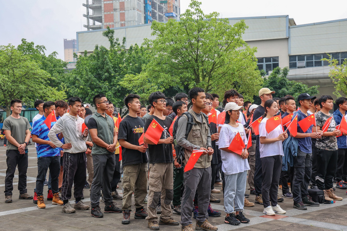 追忆红军长征历程,感受艰难险阻岁月,唤起心中奋进新征程动力。一列纵队,近5km徒步路程、500米爬坡量,党员师生全程高举国旗、党旗领头,其他学子手持校旗、四姑娘山景区等旗帜随后,寓意永远跟党走,百名学子手持小红旗、小党旗,一路高歌“我爱你中国”,场面极为震撼。