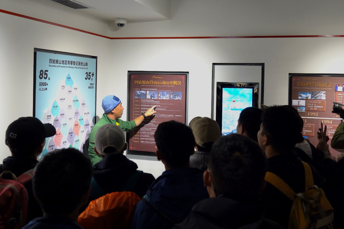 当天,旅院近百名学子还参观了四姑娘山户外博物馆,了解了四姑娘山的历史文化,登山运动历程、山地户外资源,山地运动赛事品牌,幺妹峰登顶记录等内容,回忆老一辈登山者艰苦奋斗历程,培养学生学习山地户外文化内涵、勇于创新思维、敢于实践的户外理论能力,培养勇攀高峰精神。