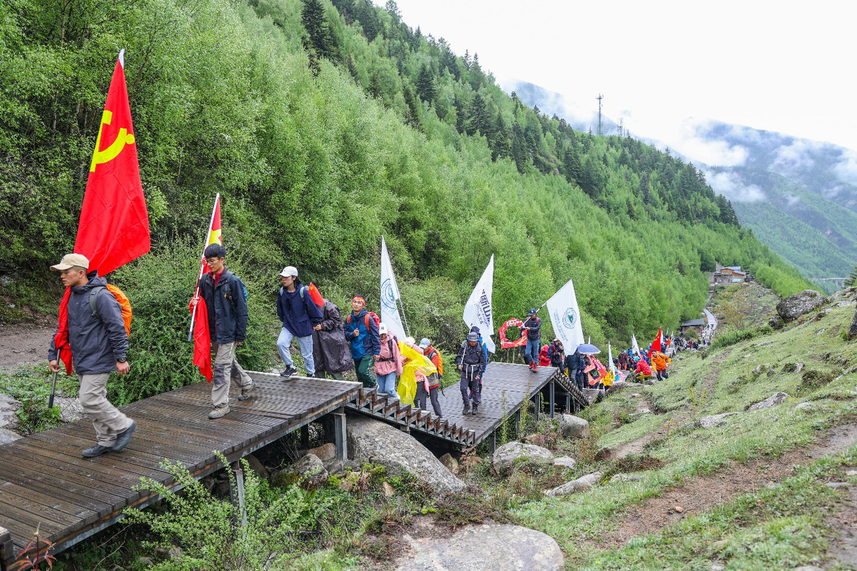 人类历史上一伟大奇迹——中国工农红军二万五千里长征。5月23日,在老师们带领下,川旅百名学子从四姑娘山镇列队出发,沿着拜姑脚、锅庄坪到达朝山坪进行高海拔适应性徒步、高原医学常识教学以及“红色长征在小金”主题红色文化知识宣讲,党员师生重温入党誓词,共同学习党史知识,体会革命先烈奋斗不屈的红色精神,以爱国之心,报强国之志。