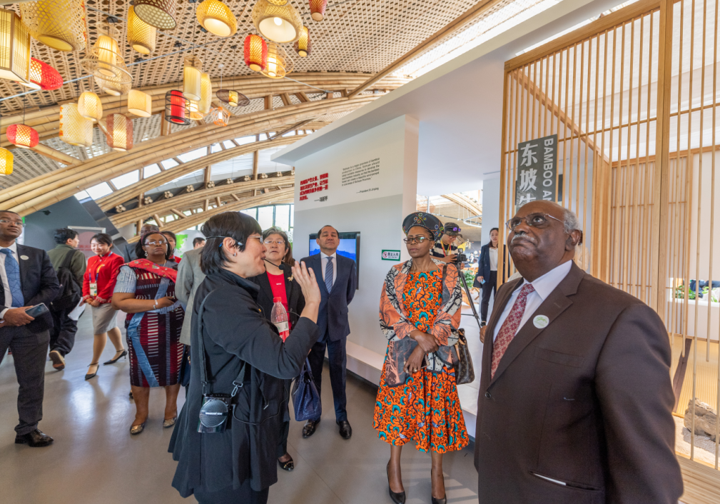 国际竹藤组织董事会联合主席江泽慧、国际竹藤组织理事会主席国厄瓜多尔驻华大使卡洛斯·拉雷亚、中国外交部国际经济司副司长黄昳扬、中国国家林业和草原局副局长彭有冬、中国北京世界园艺博览会事务协调局常务副局长周剑平、眉山市市委书记慕新海、国际竹藤组织总干事穆秋姆出席活动并致辞。