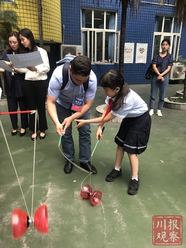 5月16日上午9点,成都市泡桐树小学师生翘首以盼,终于迎来了“海洋”全俄儿童中心代表团成员。抖空竹、川剧变脸、剪纸、茶艺表演、武术等等,俄罗斯朋友们深刻地感受了中国传统文化的魅力。一个小时的访问,响起无数次掌声。“海洋”全俄儿童中心代表团团长娜塔莉雅.谢拉米娜说:中国文化博大精深,有太多值得人们学习的地方了。希望中国学生也能够深入了解俄罗斯文化。两国的交流就因为这些青少年们更加源远流长。