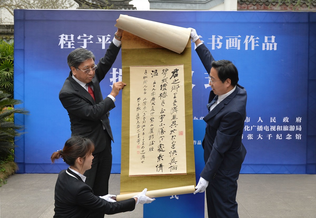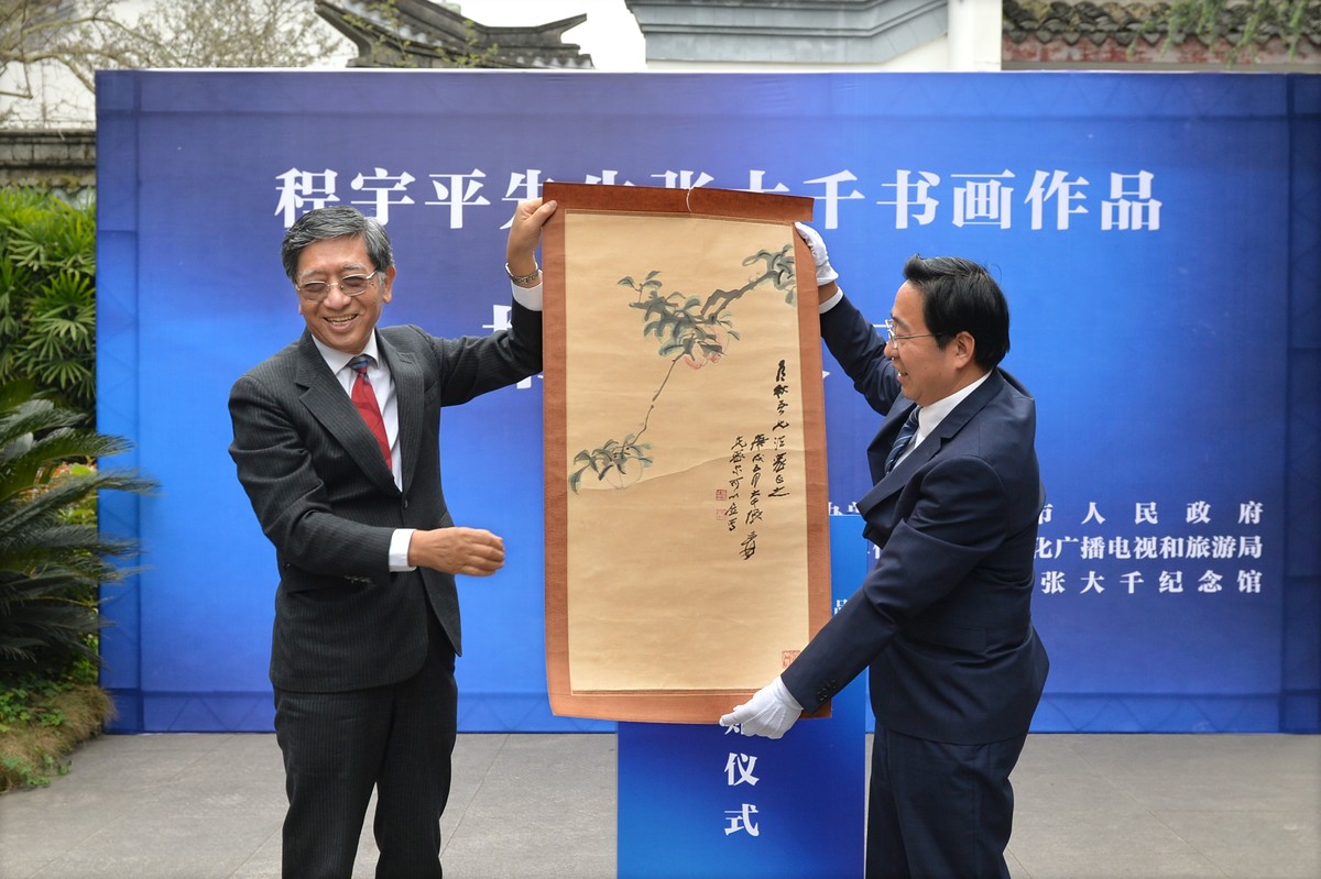 今年3月30日,“程宇平先生张大千书画作品捐赠仪式”在内江市张大千纪念馆前举行。
