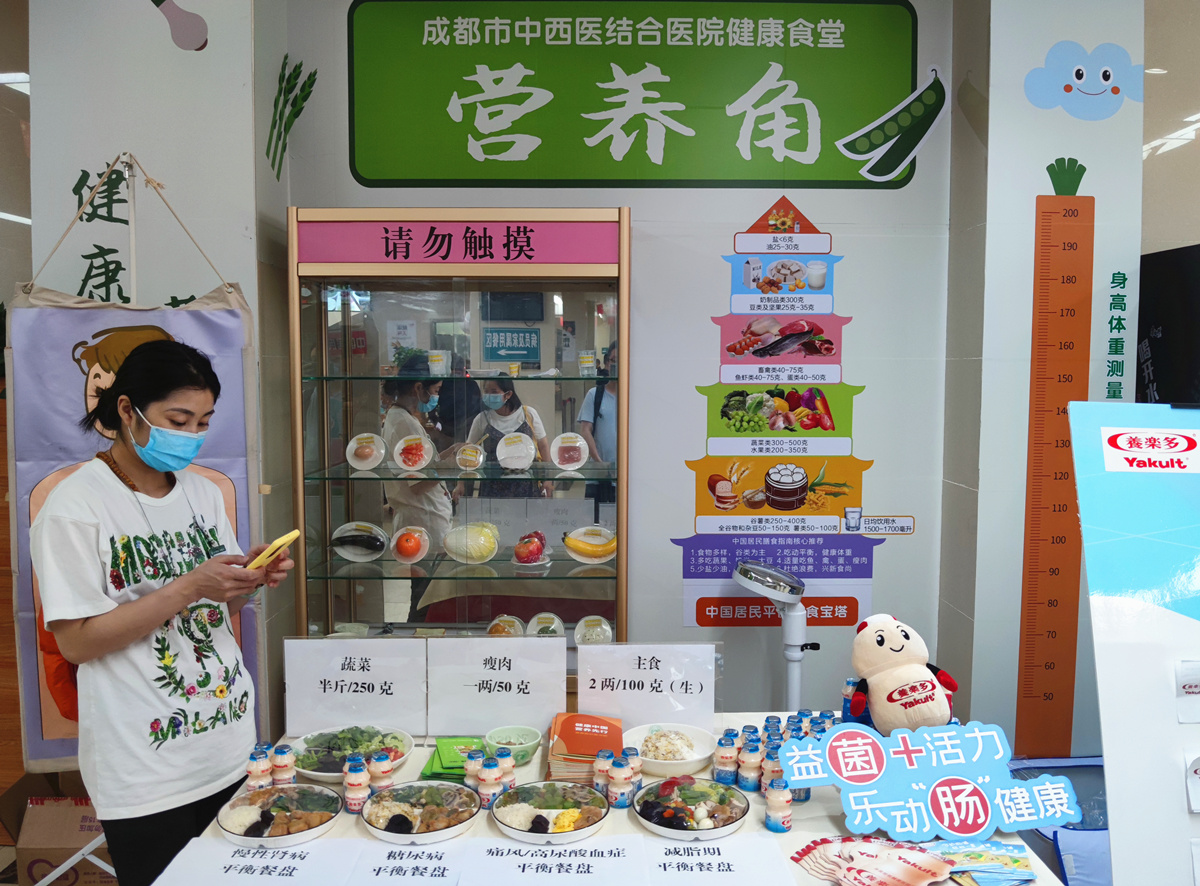 线上科普直播,线下多学科义诊,2021年全民营养周期间,成都市第一人民医院营养科围绕 “合理膳食 营养惠全家”的主题,开展形式多样的线上和线下主题活动。通过在医院食堂设立营养角,进一步营造关注营养和科学饮食的良好氛围。