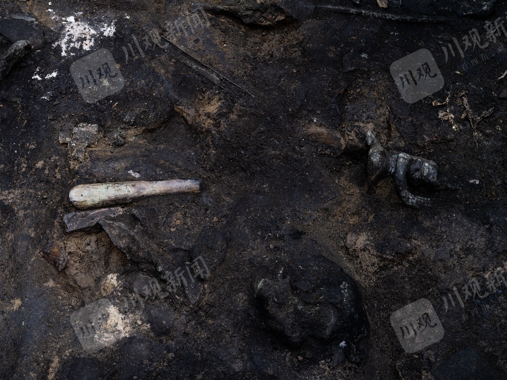 持续两个月的考古发掘,三星堆4号祭祀坑再有新发现。在象牙提取结束之后,下面新发现了3个仅手掌大小的跪坐人像。这3个跪坐人像的特别之处不仅在于它体形极小,更在于它们的造型是前所未见,丰富了古蜀国祭祀专场景。
