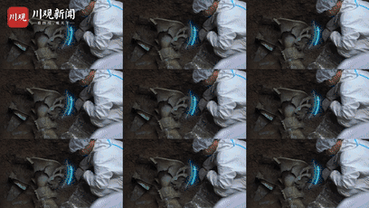 妙的是,三星堆人在铜尊的肩部焊有精美的龙形装饰,4条飞龙自上而下游动而出,这一造型十分罕见。由此可以看出古蜀人的天马行空,敢做敢想。