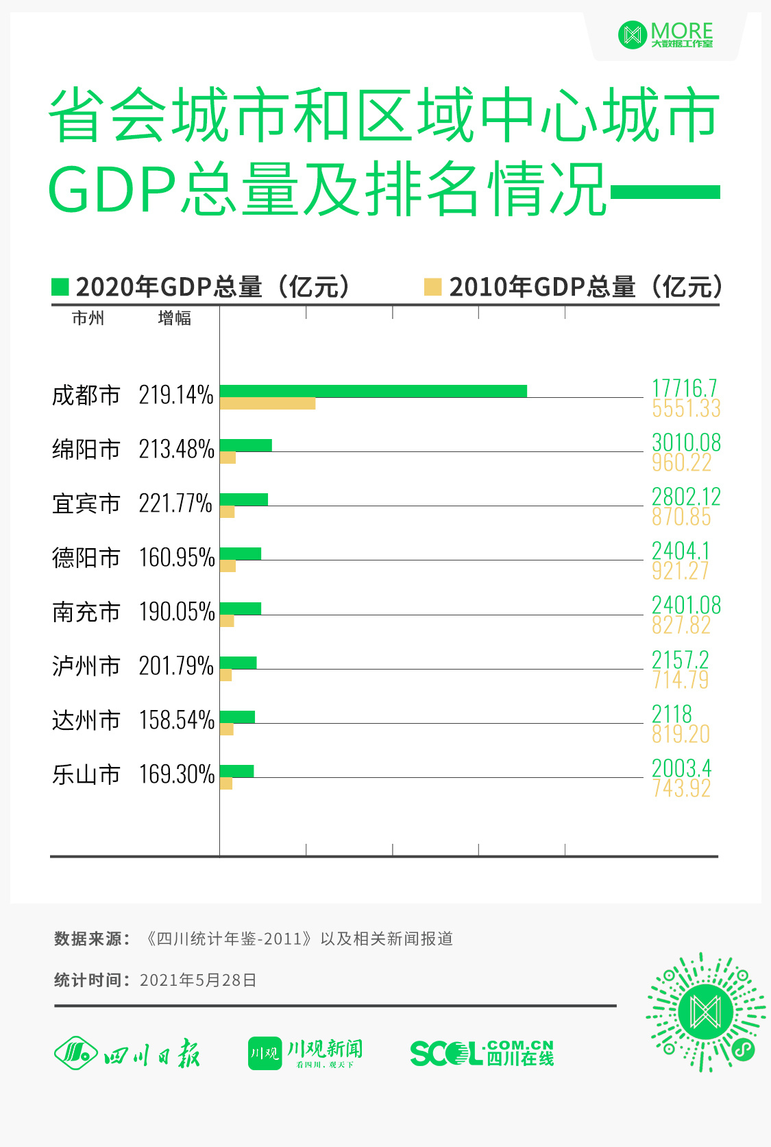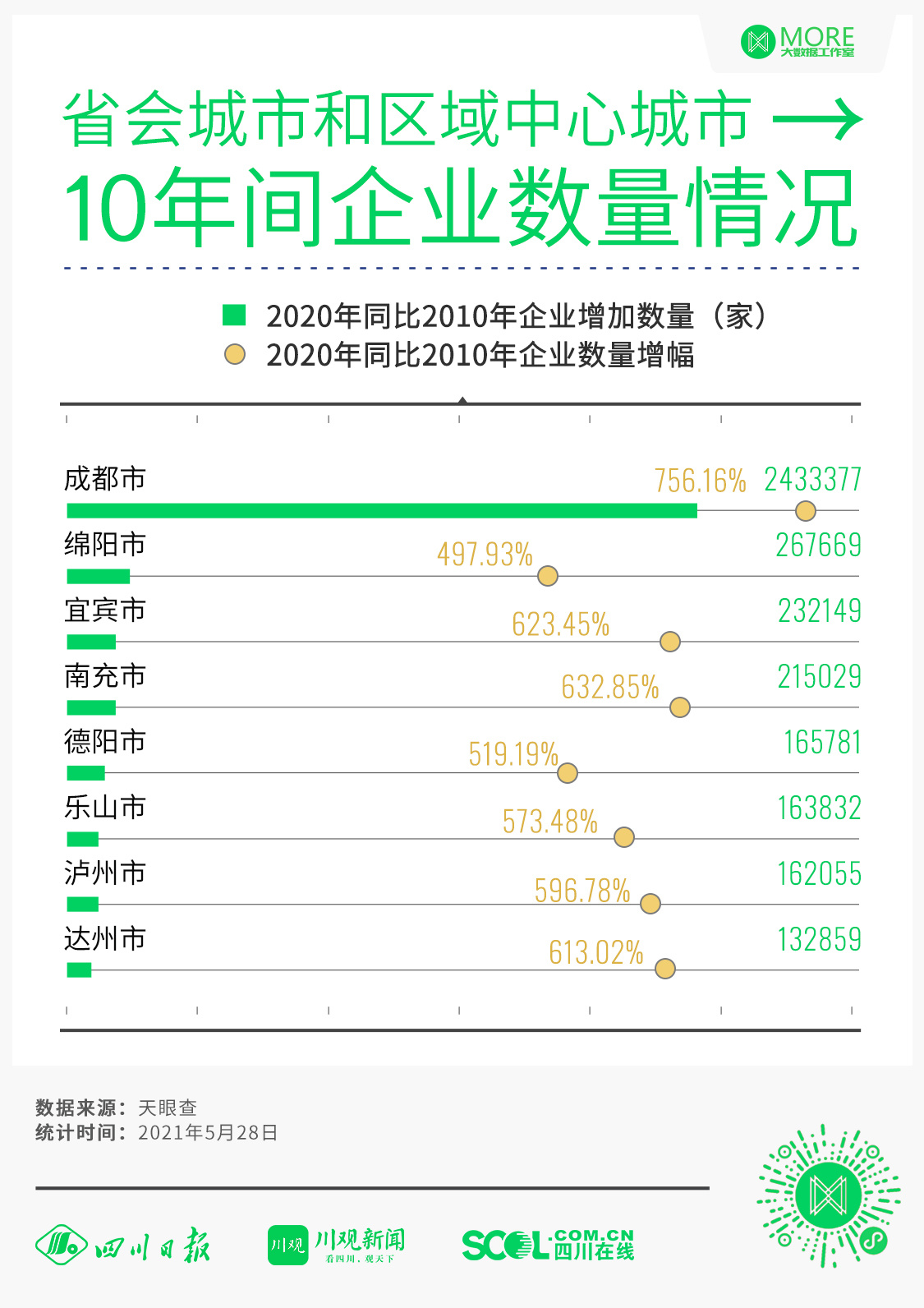 2020年,四川省加快培育壮大绵阳市、德阳市、乐山市、宜宾市、泸州市、南充市和达州市七大区域中心城市,推进成渝地区双城经济圈深度融合,支持区域中心城市争创全省和成渝地区经济副中心。为此,川报全媒体集群MORE大数据工作室联合四川日报全媒体经济新闻部通过人口流动数据、经济发展数据和注册企业数据来看这10年里省会城市成都和7大区域中心城市的发展变化。
