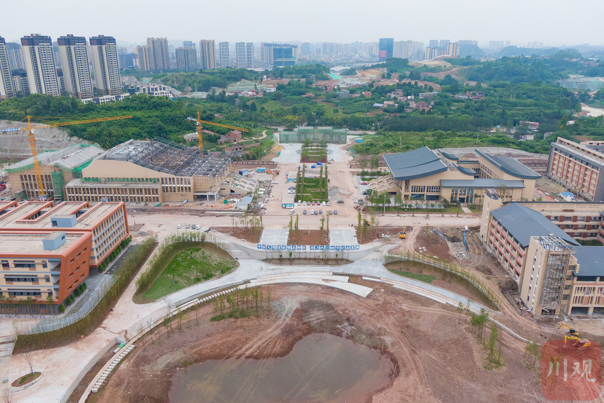 “项目完成后,将直接从小青龙河引入‘活水’,届时人工湖与周边绿化景观相互映衬,成为内江师院新校区的一大美景。”内江师范学院新校区一期项目负责人何文峰表示,“目前,包括图书馆、文科大楼等单体建筑的外部装饰工程已经基本完成,接下来将进入建筑的内装饰装修阶段及配套路网的收边收尾工作,项目所有工程将于今年6月30日前完成建设并实现交付,确保今年9月学校秋季招生工作的正常进行。”