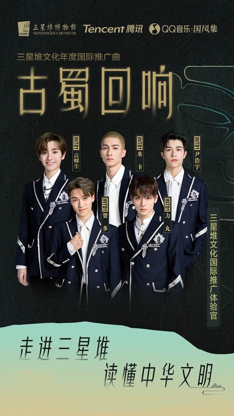 5月28日晚,三星堆博物馆官方重磅首发“三星堆文化年度国际推广曲”《古蜀回响》,这首歌由前不久《创造营2021》新诞生的国际男子唱演组合INTO1中的海外成员演唱,赞多、力丸、米卡、高卿尘、尹浩宇化身三星堆国际推广者,用歌声向世界传递着古蜀文明的神奇与正能量,歌曲目前已经在QQ音乐上线。记者采访到这首歌的INTO1演唱成员、词曲作者冥凰、陈鹏杰,带你揭秘幕后趣事。对歌曲感兴趣的朋友可以在QQ音乐收听。
