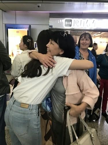 2019年5月14日上午11点35分,双流机场大厅出口处,蔡文晴与来川的教师埃琳娜紧紧相拥。2008年,12岁的蔡文晴受邀到“海洋”全俄儿童中心疗养,当时的埃琳娜是一名手工老师,她赠送了一个手工相框给蔡文晴。11年以来,这个相框一直被珍藏着。▼