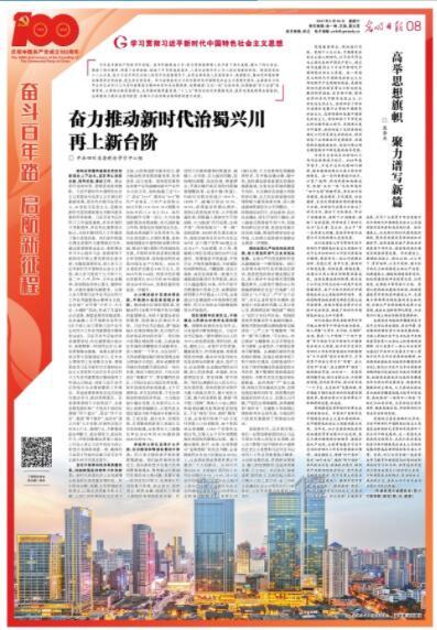 今年是中国共产党的百年华诞。在百年接续奋斗中,我们党团结带领人民开辟了伟大道路,建立了伟大功业,铸就了伟大精神,积累了宝贵经验,创造了中华民族发展史、人类社会进步史上令人刮目相看的奇迹。特别是党的十八大以来,在以习近平同志为核心的党中央坚强领导下,全党全国各族人民艰苦奋斗、砥砺前行,推动党和国家事业取得历史性成就、发生历史性变革。四川省委坚定以习近平新时代中国特色社会主义思想为指导,全面落实习近平总书记对四川工作系列重要指示精神和党中央决策部署,统筹推进“五位一体”总体布局、协调推进“四个全面”战略布局,认真践行新发展理念,扎实推动高质量发展,“十三五”规划目标任务圆满完成,脱贫攻坚战取得全面胜利,全面建成小康社会胜利在望,治蜀兴川各项事业取得新的重大成就。