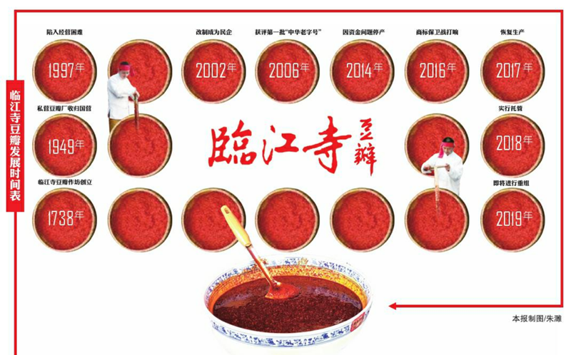 2016年7月,国家工商总局发出公示:泸州人罗某以连续三年不使用为由,向国家工商总局商标局提请撤销申请,要求撤销“临江寺”商标在第30类“豆瓣”等全部核定使用商品上的注册。公示期只有3个月,申请一旦成功,意味着临江寺豆瓣这一“中华老字号”,将归罗某个人所有。
