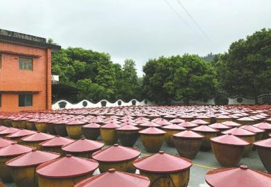 晒场摆放着400多个晒缸。“这边是千斤缸,一个可装一吨豆瓣,缸子高1.5米,有半米埋在地里,可以吸收地热。”临江寺豆瓣厂负责生产管理的副总经理刘忠富对记者说,千斤缸一共有56个,已有上百年历史,都是老祖宗留下的。