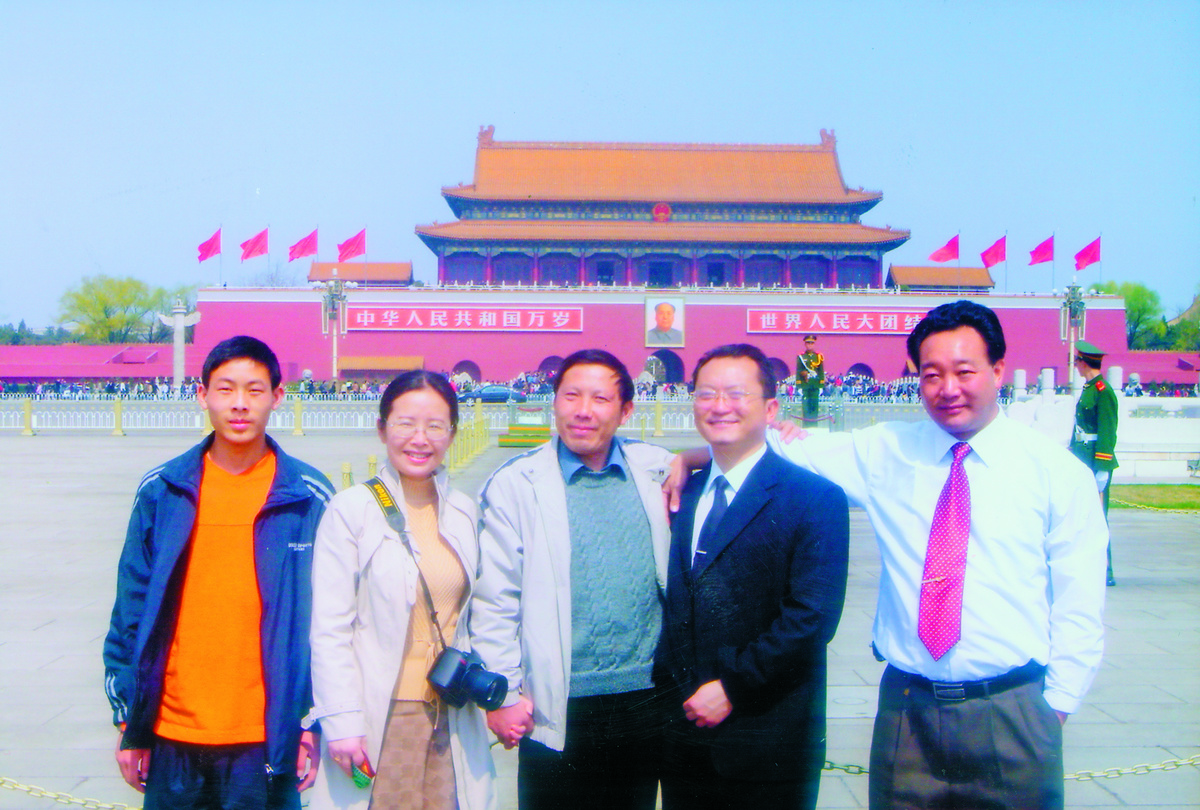 2005年6月,王顺友事迹报告团合影,左二为石进