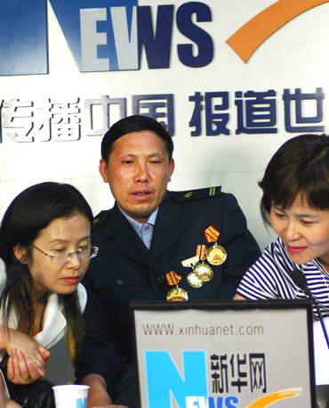 石进陪王顺友做客新华网(左一)