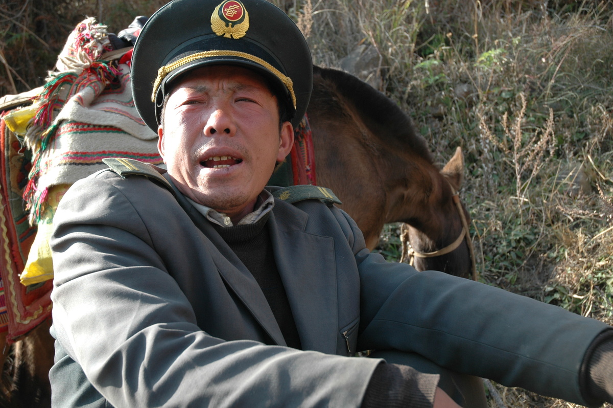石进与王顺友同走马班邮路,晚上露宿山间。右一为石进