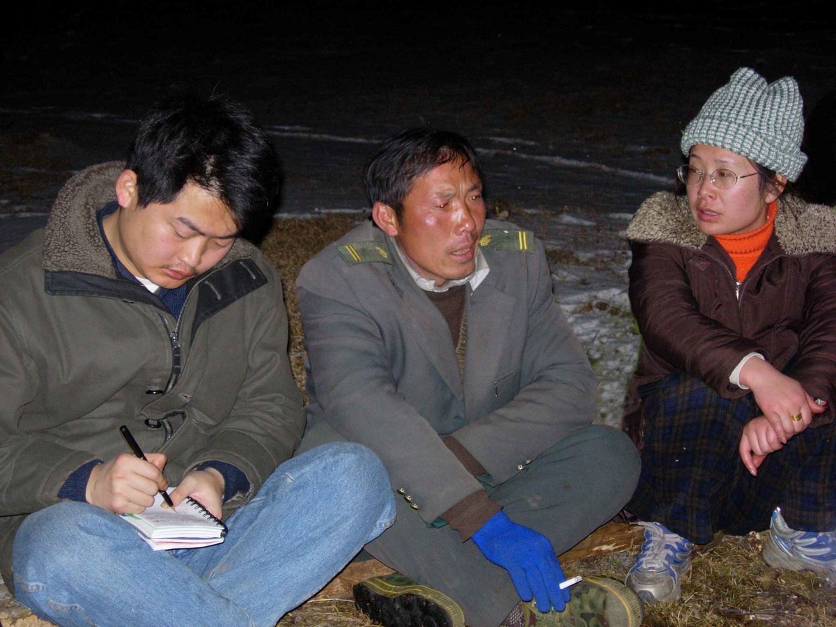 石进在采访中与王顺友合影(左一)