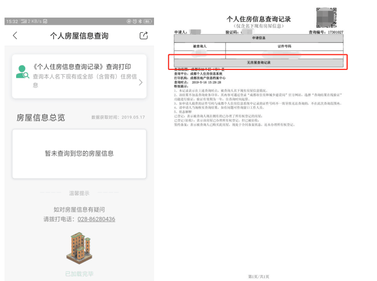 5月23日,成都“天府市民云”APP《推出个人住房信息查询记录》(市民多称其为“无房证明”)打印服务。成都市民买房、落户、入学、申请保障性住房、租房提取公积金等,下载天府市民云APP,通过慧眼实名认证(需上传身份证证件照),点击“房屋管理服务”-“个人房屋信息”-“个人住房信息查询打印”,将查询结果为“无房屋查询记录”的电子证明保存至图片,即可作为“无房证明”使用,效力与线下自主查询机打印完全一致。