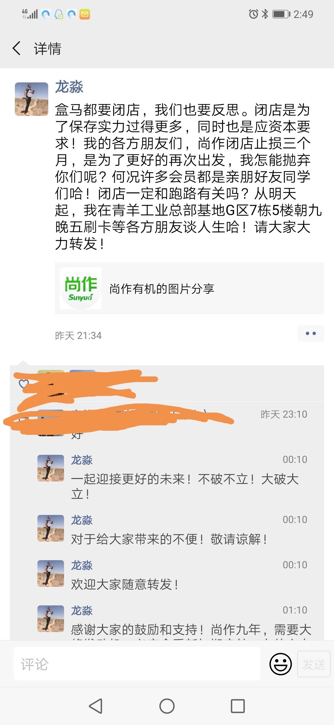 5月22日,成都尚作农业科技有限公司董事长龙淼发布公开信,承认公司经营遇到困难,进入闭店止损阶段。