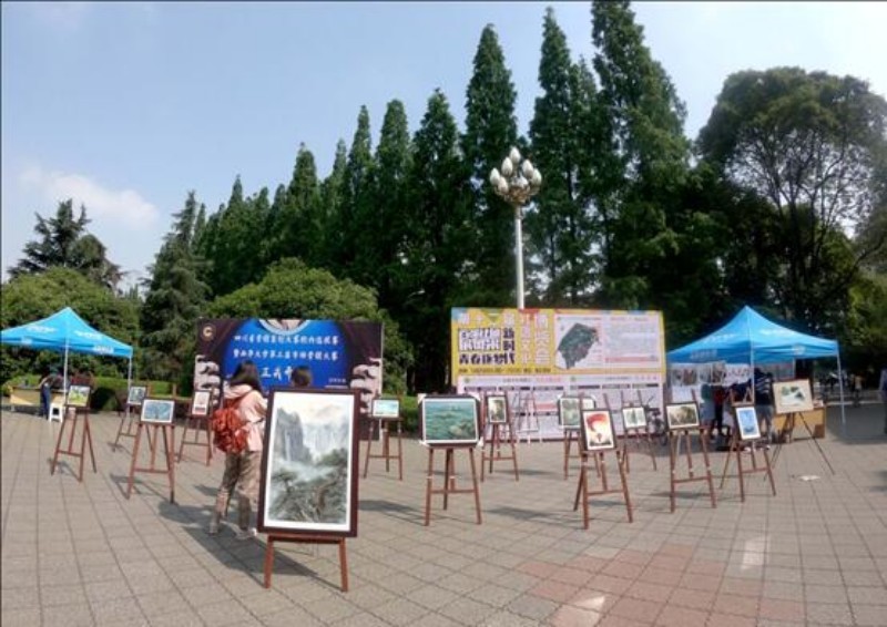 明德广场人来人往,奇妙而隽秀的画作引人驻足观赏。“我最喜欢的画是《犍为小火车》,色彩很浓郁,栩栩如生。火车行驶在漫山的油菜花中,真有一种开往春天的感觉”,来自2016级英语专业的张顺霞在观赏完所有画作后谈道。