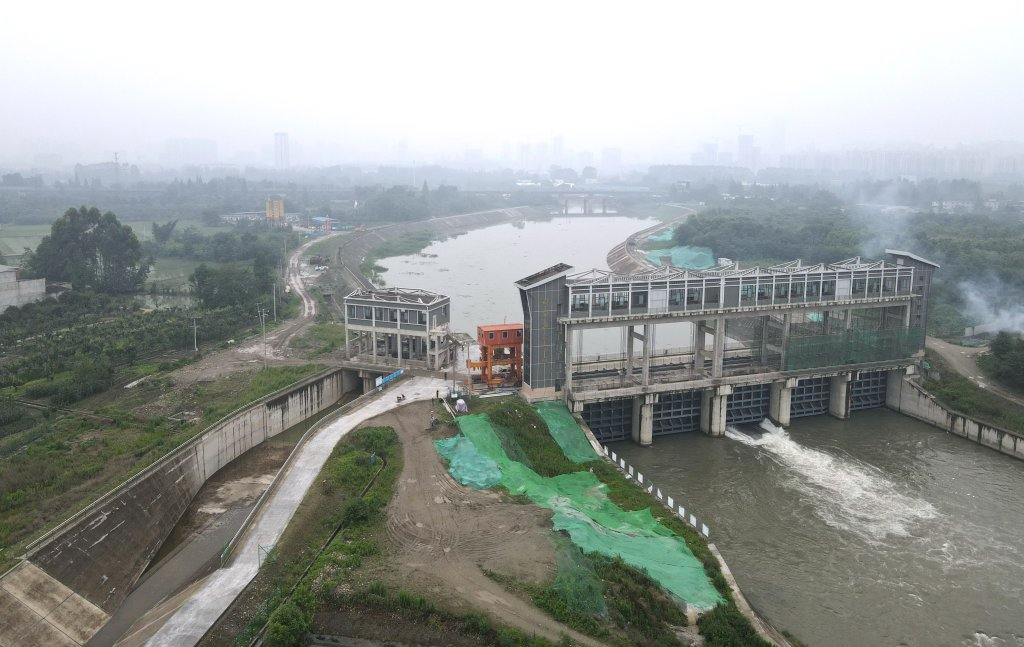 位于成都市新都区境内毗河中游的苟家滩拦河闸,左侧渠道即毗河供水一期工程总干渠
