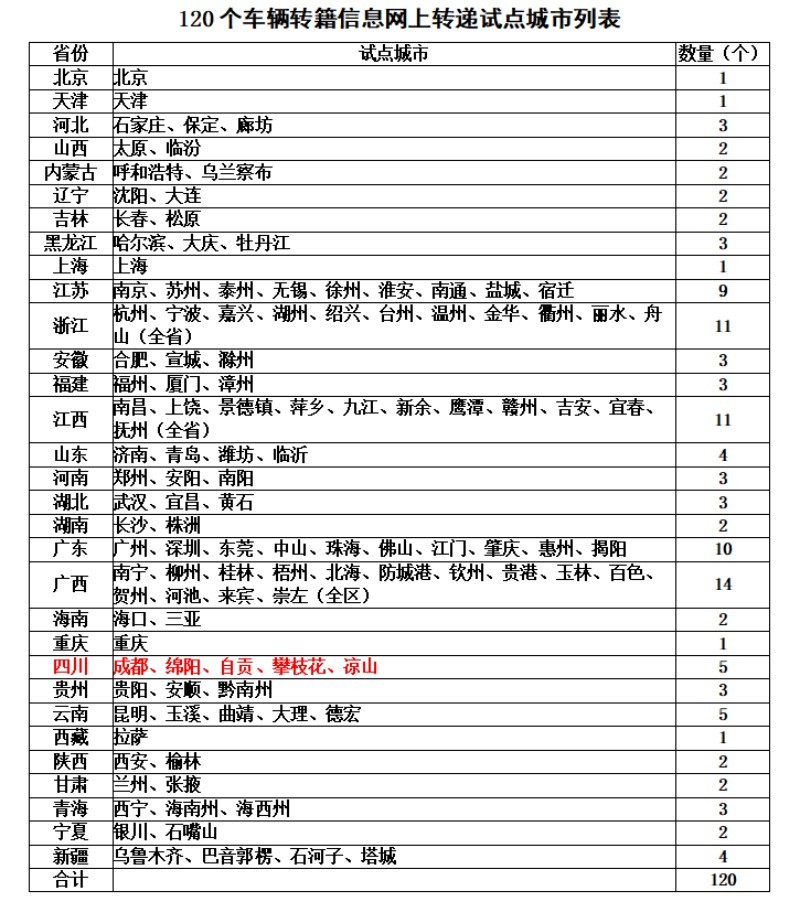 注意:1. 不符合电子化档案转递条件的车辆,或不属于120个试点城市(名单附后)的车辆办理转籍业务仍按照原有机动车迁入或迁出流程办理,需到迁出地查验车辆、提取纸质资料。。