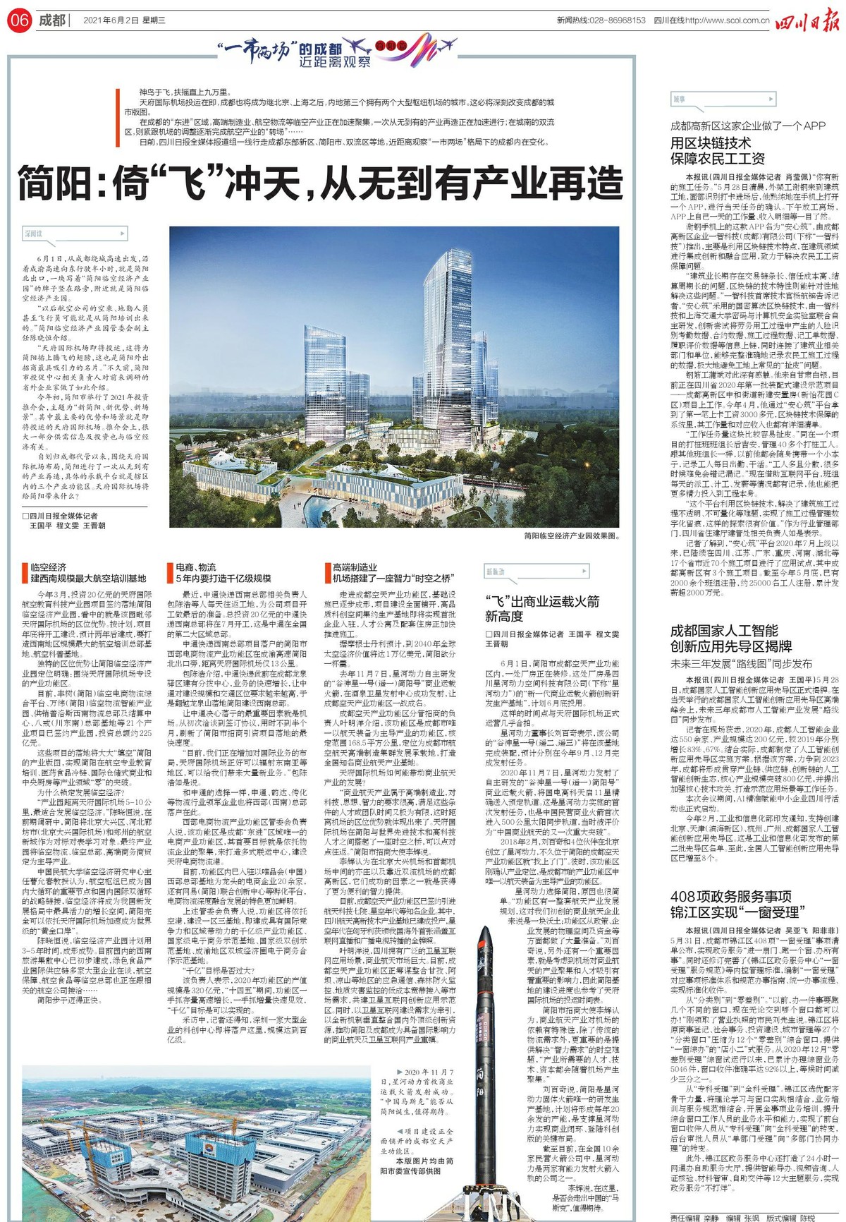 成都空天产业功能区分管招商的负责人叶明洋介绍,该功能区是成都市唯一以航天装备为主导产业的功能区,核定范围168.5平方公里,定位为成都市航空航天高端制造集群发展承载地,打造全国知名商业航天产业基地。
