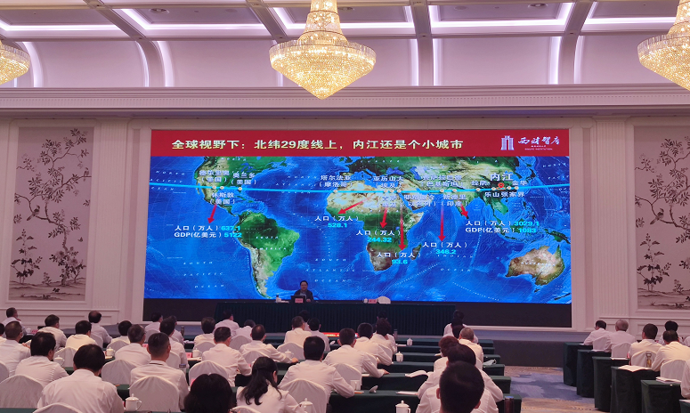 “内江发展形势十分严峻!”在专家专题辅导会上,西南财经大学西财智库首席执行官汤继强一针见血,用详实的数据直击内江发展中经济基本面弱、开放程度不高等痛点。一张张图片相继展示,并不亮眼甚至处于低位的内江数据让在场参会者凝神思索,倍感压力。
