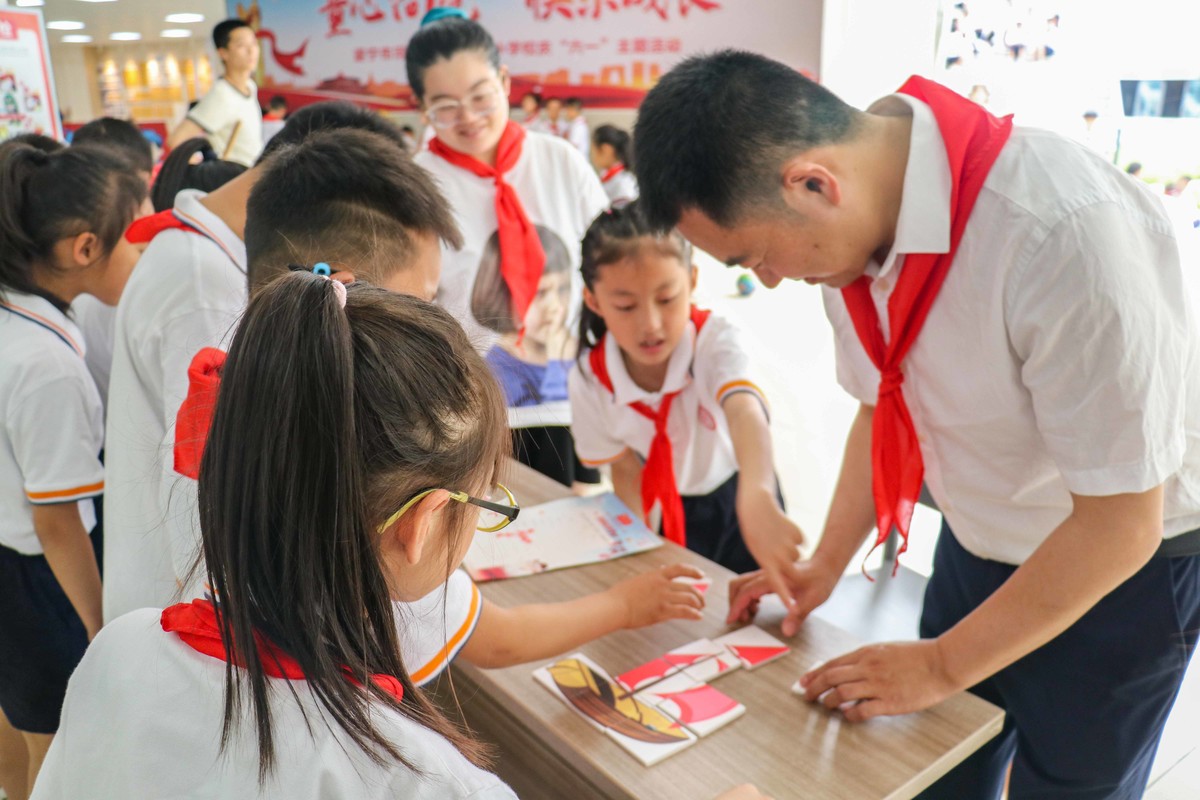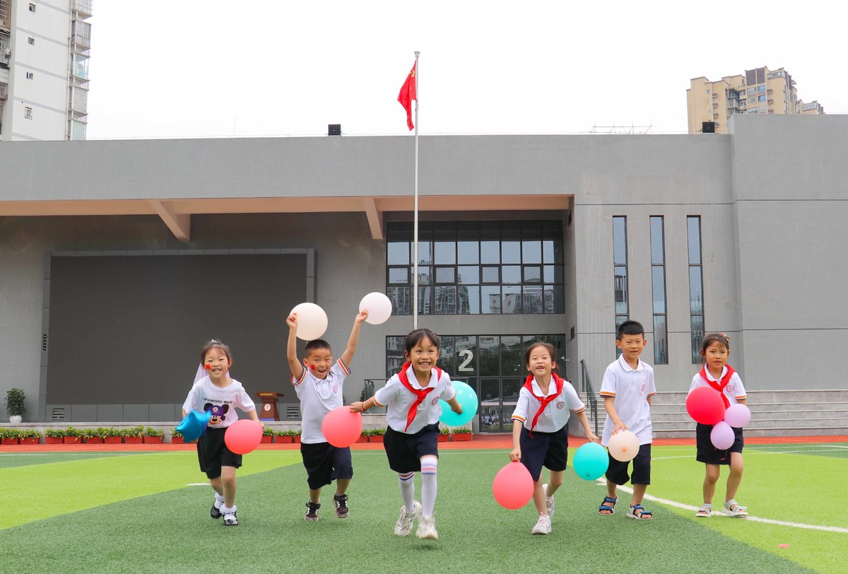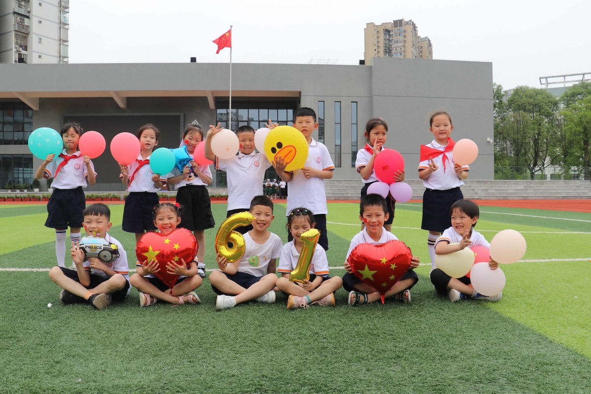 六一儿童节,遂宁市各学校组织准备了丰富多彩、形式多样的活动。图为遂宁市河东新区紫竹路小学校准备了我给祖国写封信、趣味游园、文艺演出等活动,在户外活动场所,孩子们高兴地玩着游戏,欢庆六一。