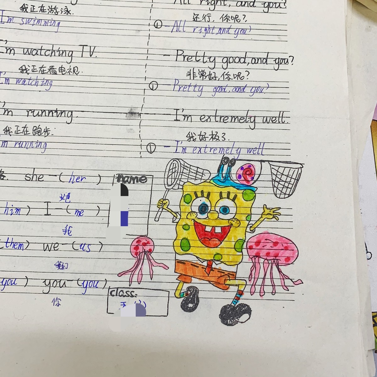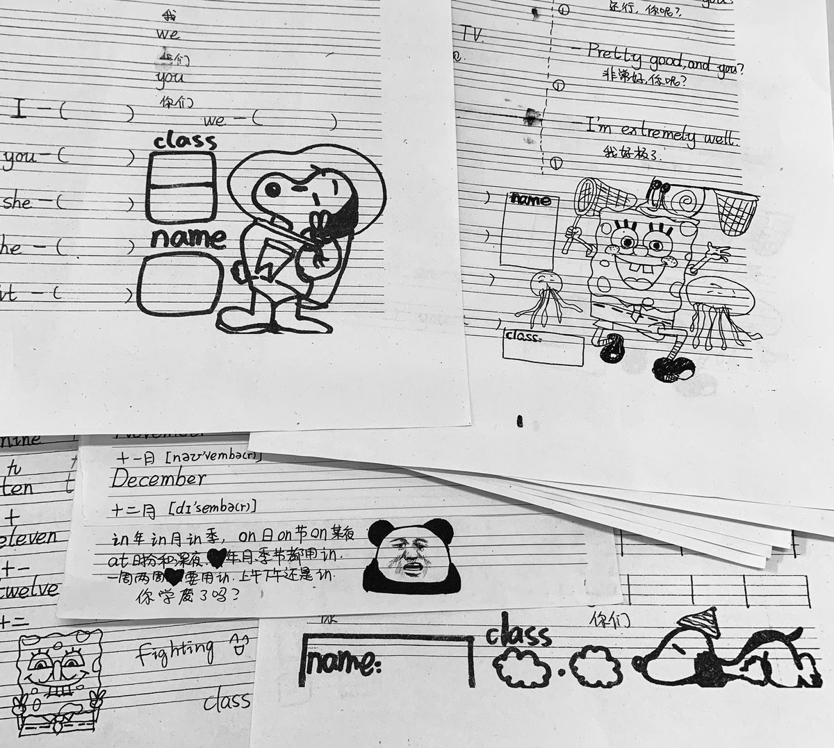 作为一名年轻英语教师,陈兰岚喜欢将手绘技能运用到教学当中,“比如,我把字母和单词手抄下来,再加上画,同学们就很感兴趣,就学得很快很牢固。”另外,陈兰岚会在作业本上画一些可爱的图案,学生们做完作业后可以在图案上填色,或者会在试卷上进行一些小点缀,增加了教学的趣味性。“学生们很喜欢,,对英语课的兴趣不断提高,成绩也有明显进步。”有时候学生们还会和陈兰岚开玩笑:“老师,隔壁班的学生都遭你的画馋哭了!”
