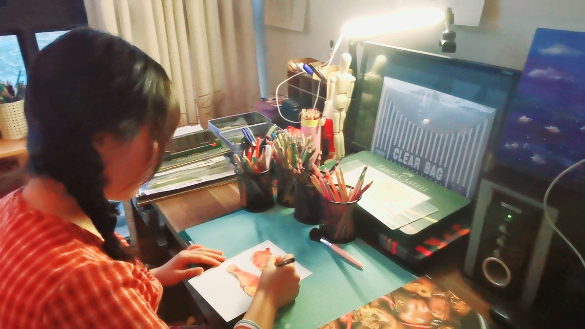 “谢谢大家的喜欢,其实能够在业余爱好上得到这么多的认可,还要从我小的一个妹妹说起。”陈兰岚有两个妹妹,小妹妹与两个姐姐的年龄相差17岁,从可爱的小妹妹一出生,两个姐姐就有了要为她“记录成长”的想法。陈兰岚告诉记者,她在读高中时就很喜欢绘画,甚至在高三时还集训了一学期美术,所以,从小妹妹出生到现在,陈兰岚每一年都会给她画一张画。“这个才是我画画最开始也是最纯粹的初衷。”