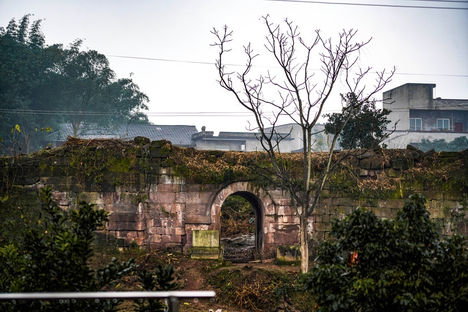 沿着东门城墙一路向江岸行走,可见南门的基础墙石同样风化严重,应为宋代遗存。2004年当地原址重建了南门和西门一带的城墙,再现了当年城内军民据险抗敌的情景。到得江岸,一处名叫猫嘴岩的下方,有阔约20余亩的农田。700多年前,它是宋军操练水陆军事的校场。而江心的大中坝,据说与合江的石盘寨、泸州甘余渡一起,并为南宋泸州的水军基地。