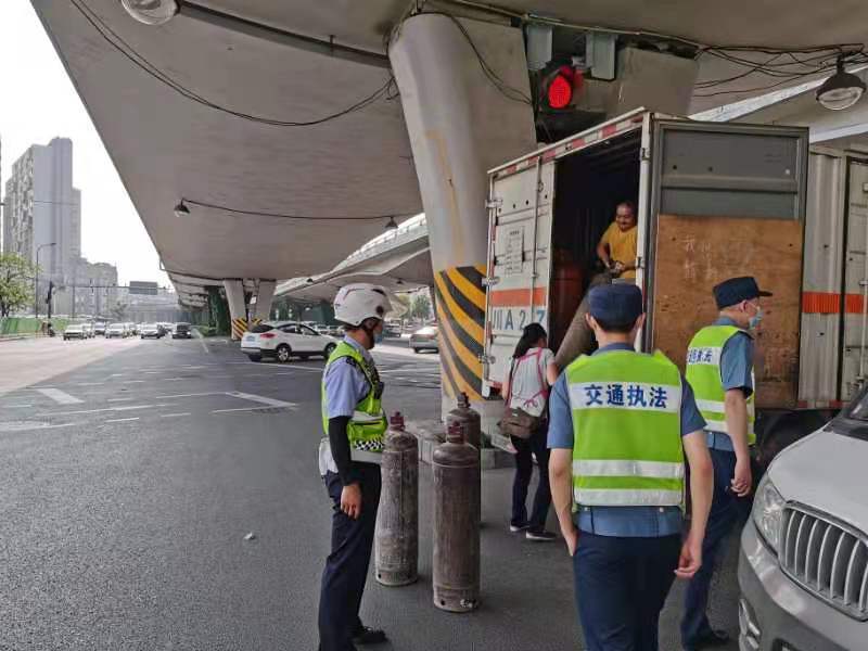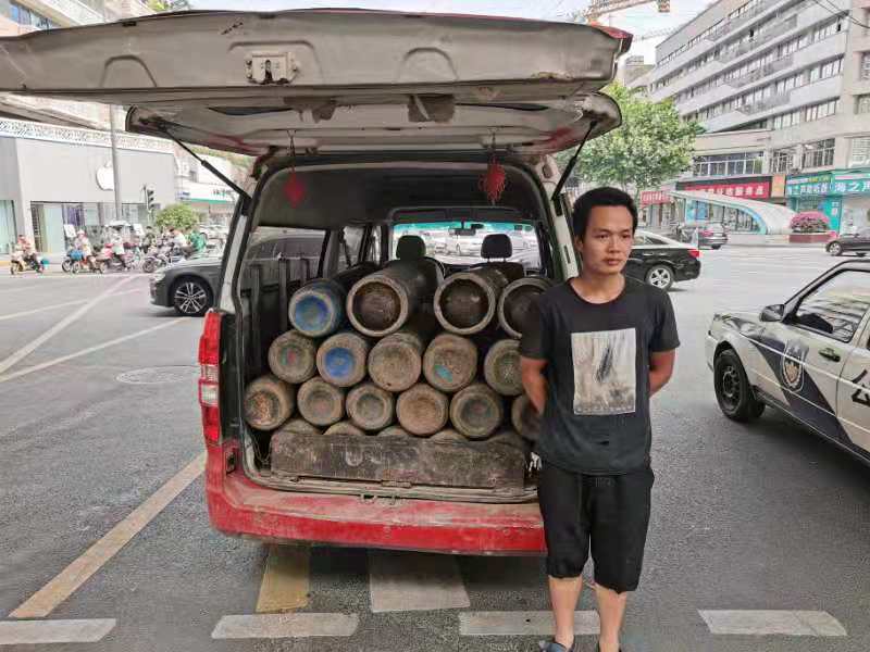 6月1日14时45分许,成都市交警二分局民警齐梽㭎在九里堤中路挡获一辆川A7LD**的面包车,发现车内装满了危险品罐体。齐梽㭎立即将该车引导至安全的地点进行检查,驾驶人吴某称,车上罐体内装载的是氧气和丙烷,他由大丰某公司出发准备送到建设路的工地。民警检查发现该车为非危险品运输车,不具备运输危险品的资格,也没有任何安全防护措施,存在很大的安全隐患。
