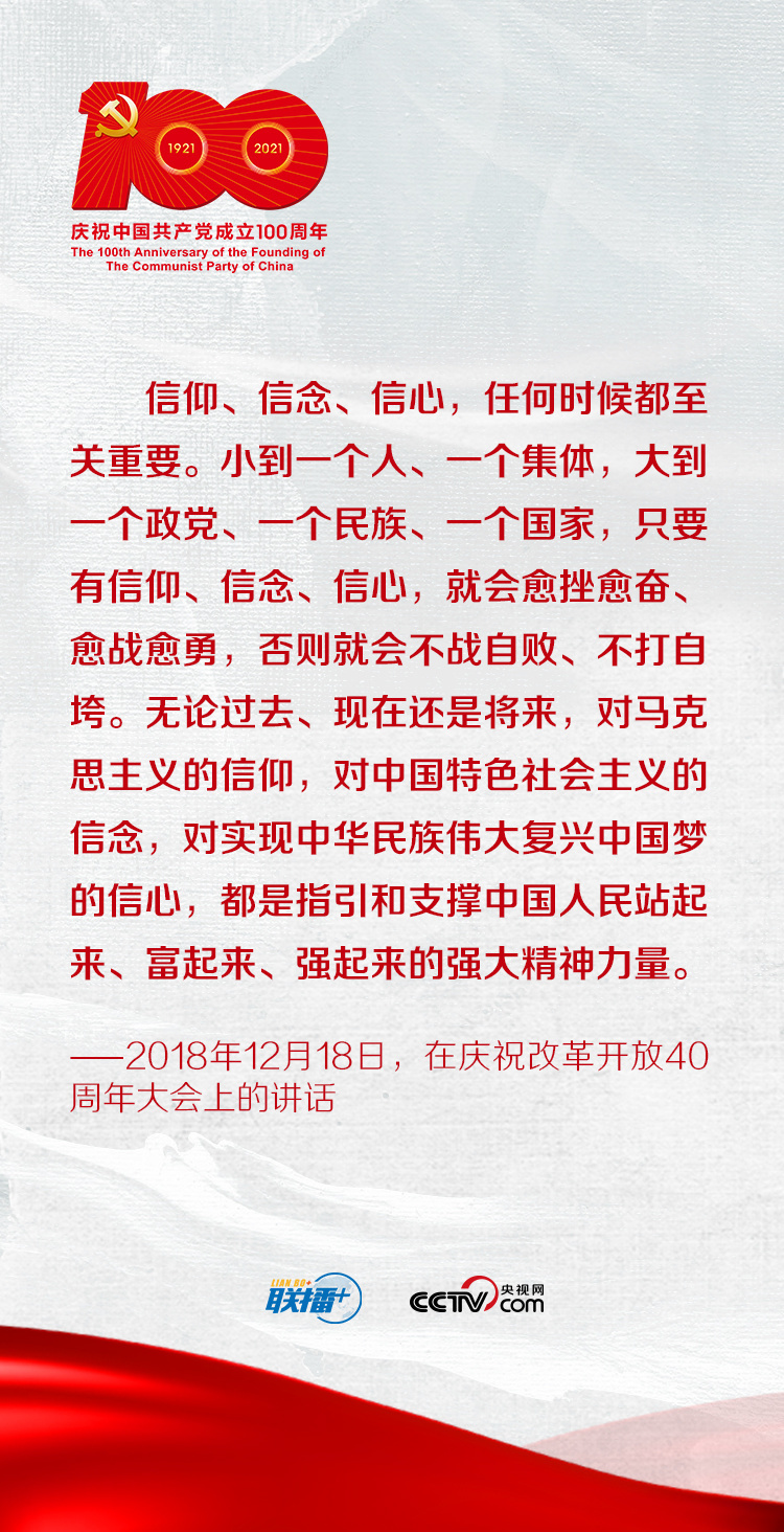 信仰、信念、信心,任何时候都至关重要。深刻领悟并践行“学史增信”的要求,我们的信仰、信念、信心才能更加牢固,走中国特色社会主义道路的政治自觉、思想自觉和行动自觉才能更加坚定。央视网《联播+》特梳理总书记重要讲话,与您一起学习。