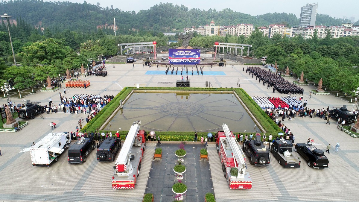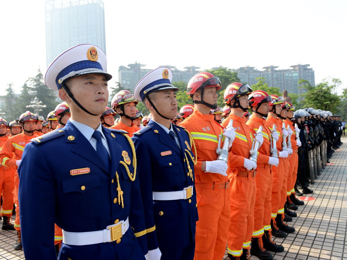 原来,这是当天上午,乐山市公安局与乐山市消防救援支队在乐山广场联合开展“剑锋——2019反恐演练”活动,包括特警、交警、民警和消防队员在内的1000多人参加了演练。