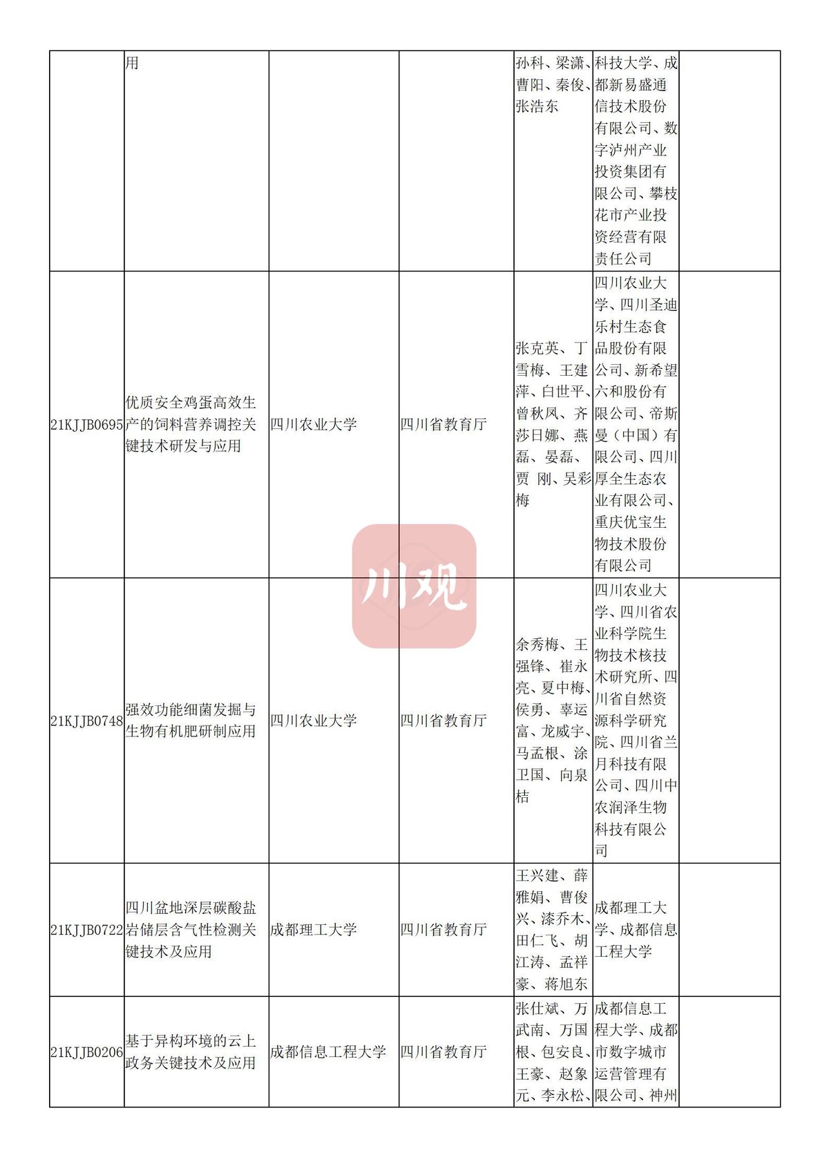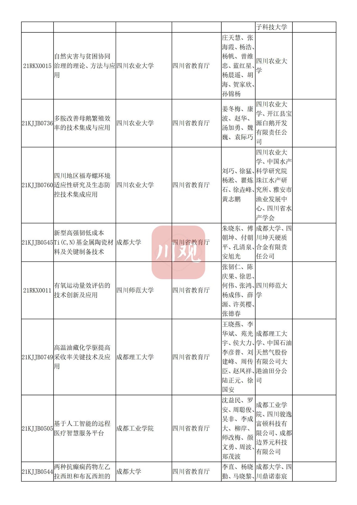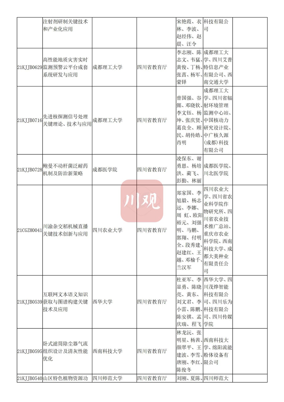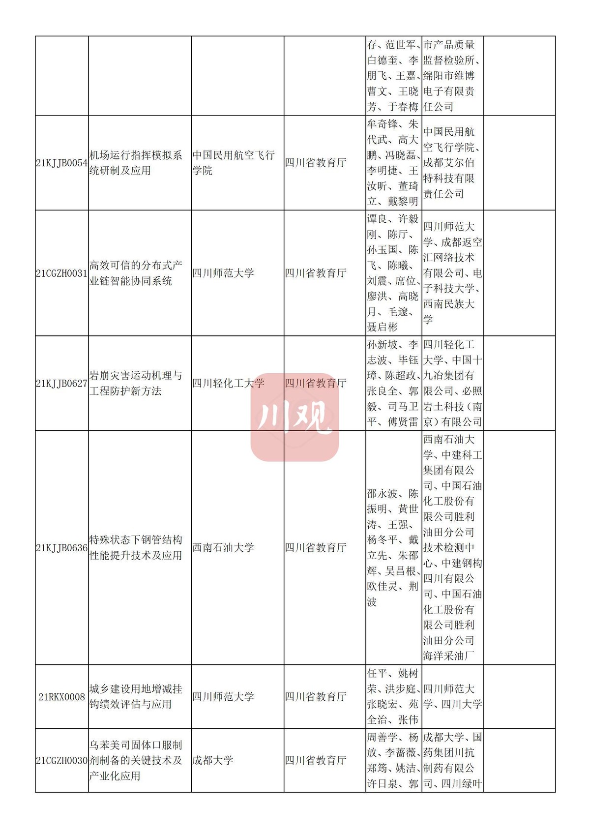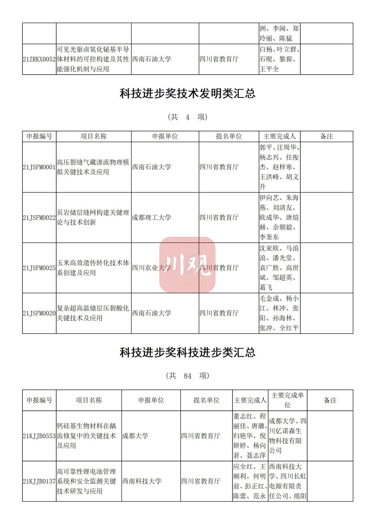 川观新闻记者6月3日从四川省教育厅获悉,根据科技厅《关于2021年度四川省科学技术奖提名工作的通知》要求,经组织所属高校推荐,教育厅拟提名119个项目(人选)参加2021年度四川省科学技术奖励评审,其中:科技杰出贡献奖1名、杰出青年科学技术创新奖5名、科技进步奖自然科学类23项、科技进步奖技术发明类4项、科技进步奖科技进步类84项、科技进步奖国家科技合作类2项。