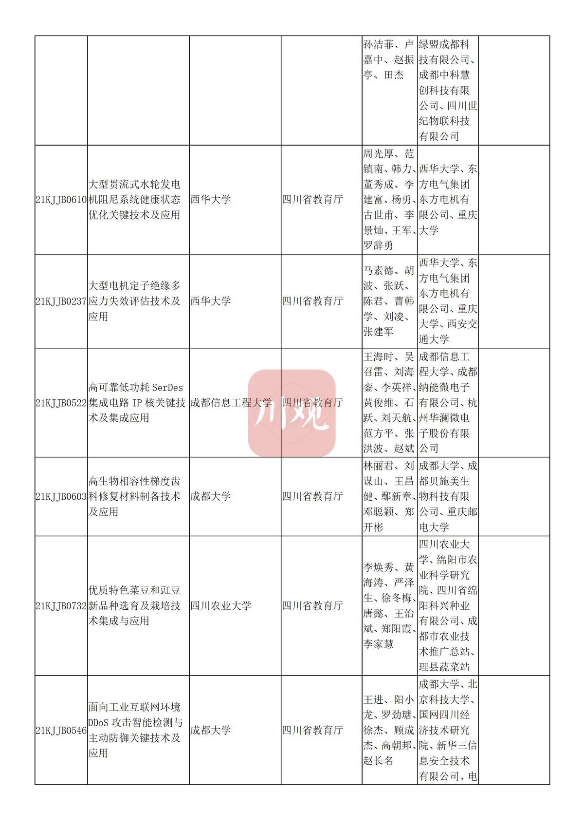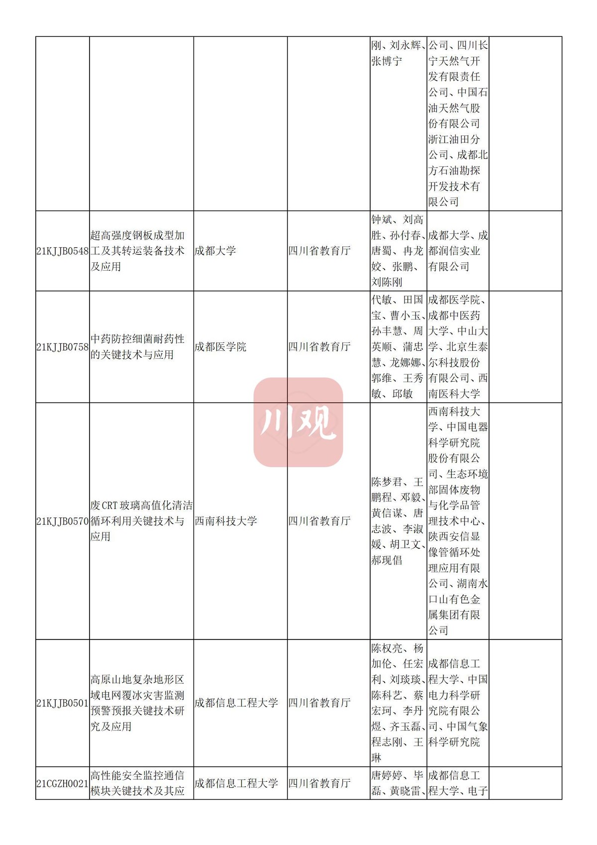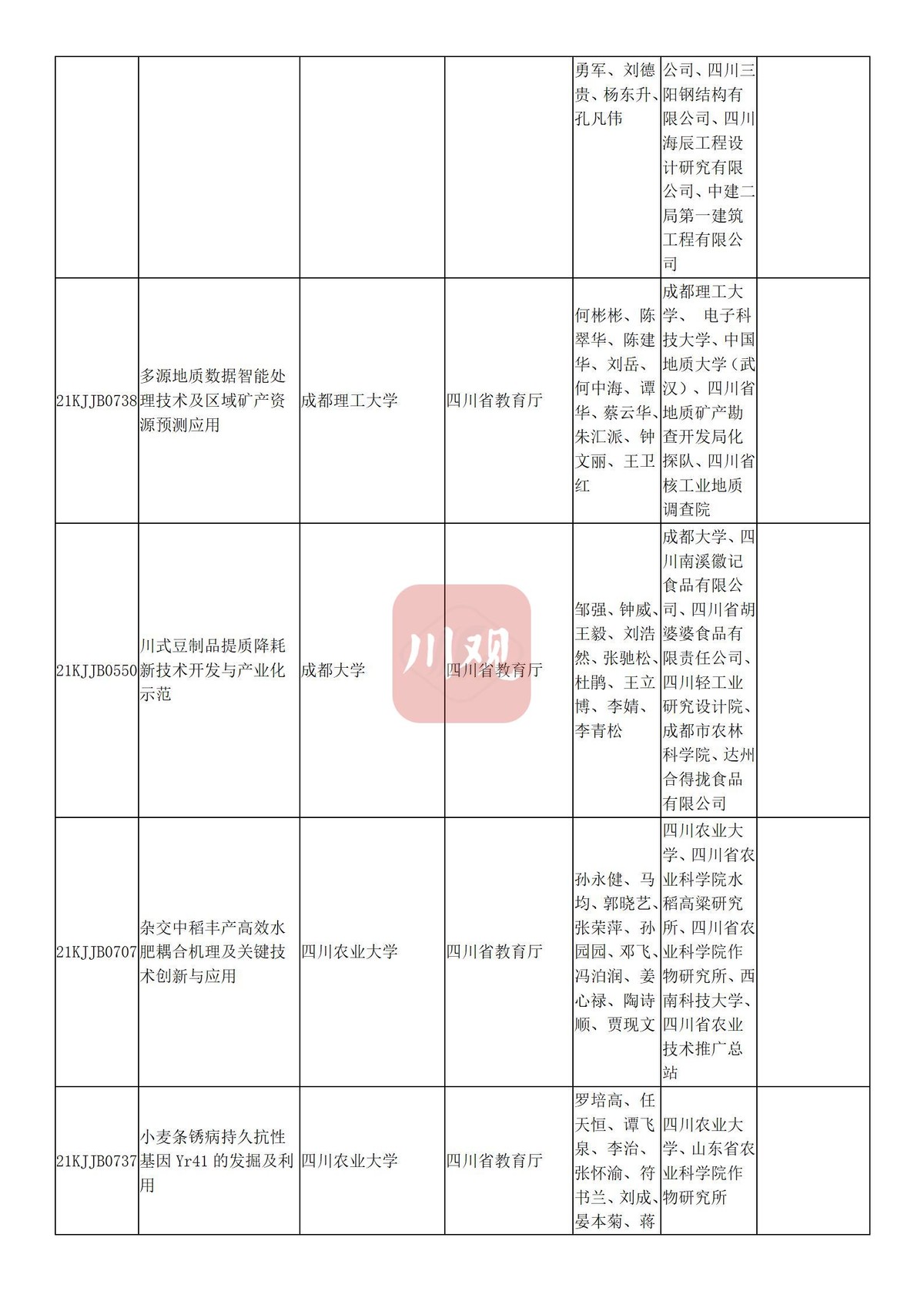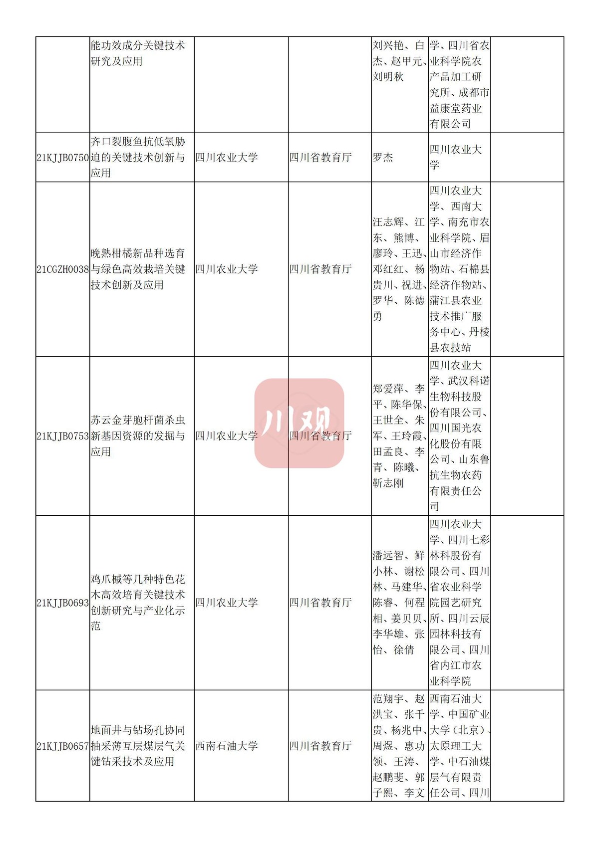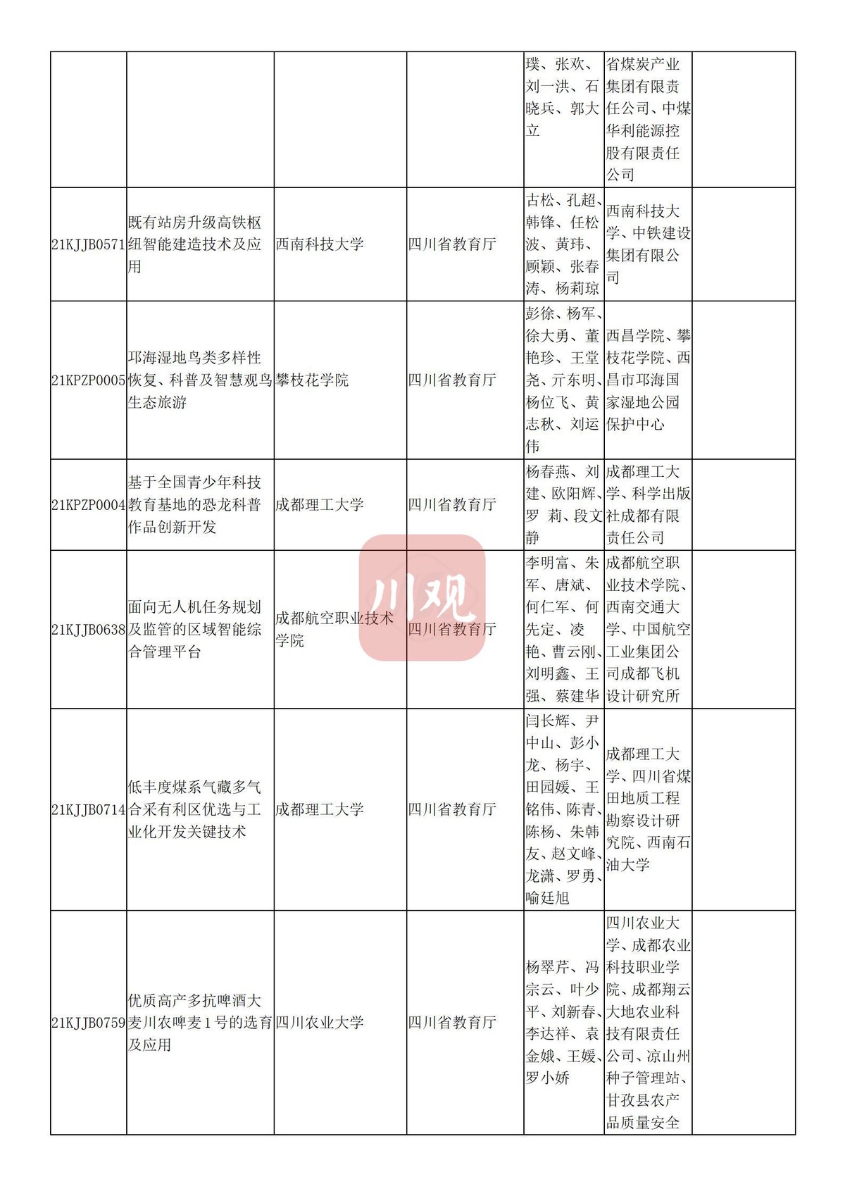 川观新闻记者6月3日从四川省教育厅获悉,根据科技厅《关于2021年度四川省科学技术奖提名工作的通知》要求,经组织所属高校推荐,教育厅拟提名119个项目(人选)参加2021年度四川省科学技术奖励评审,其中:科技杰出贡献奖1名、杰出青年科学技术创新奖5名、科技进步奖自然科学类23项、科技进步奖技术发明类4项、科技进步奖科技进步类84项、科技进步奖国家科技合作类2项。