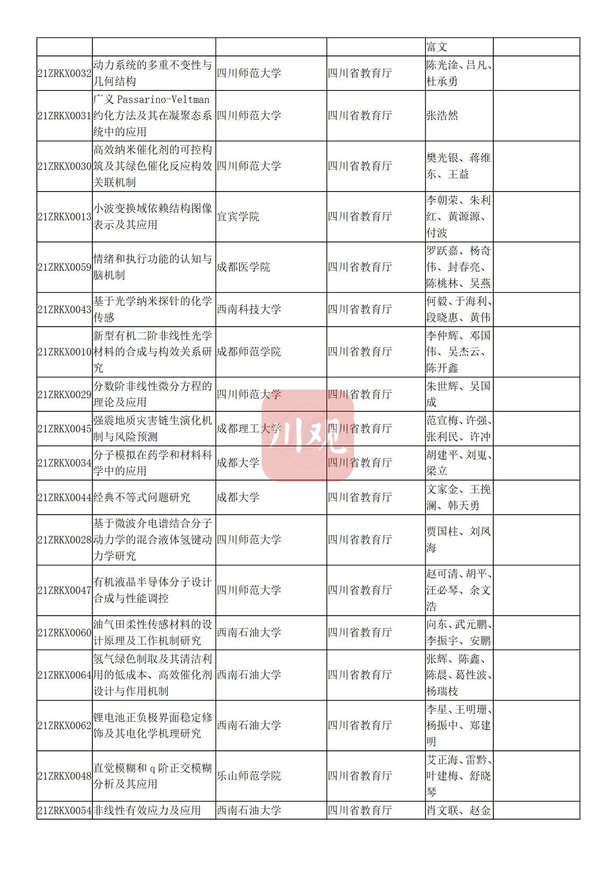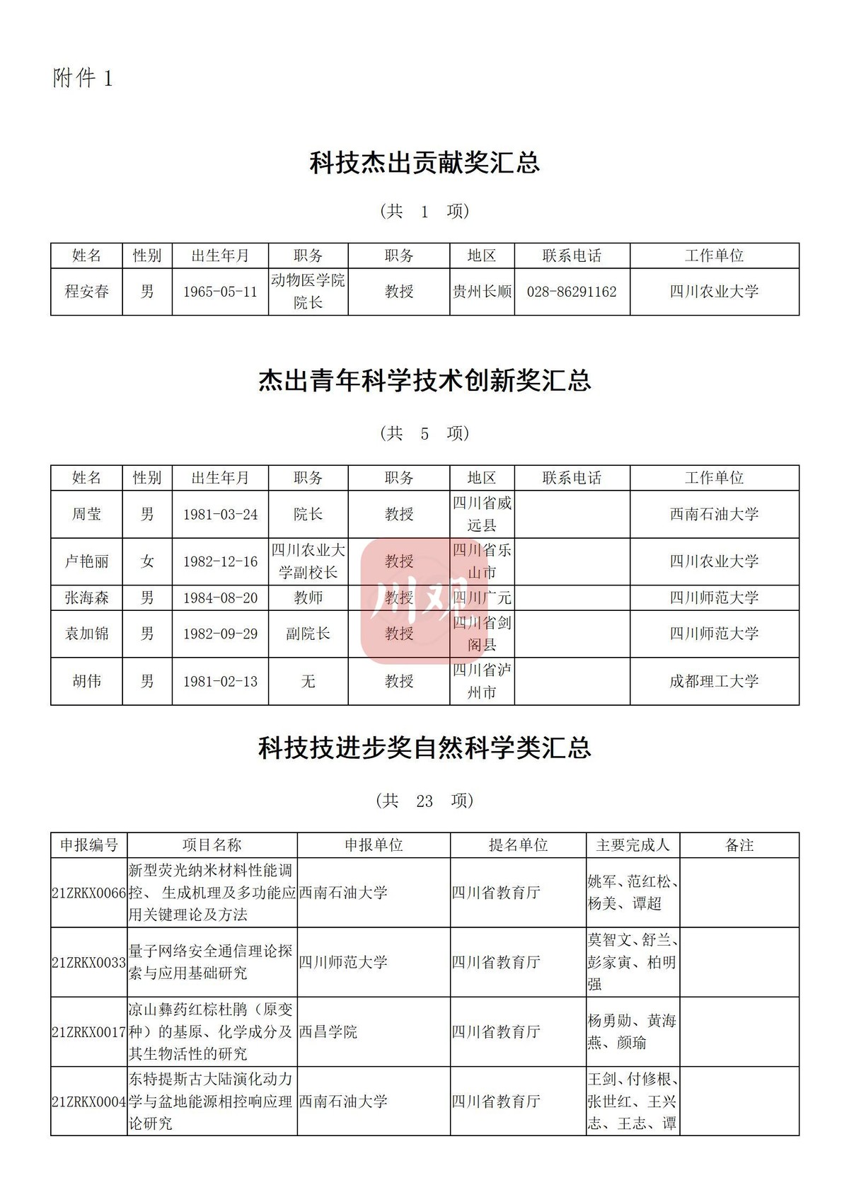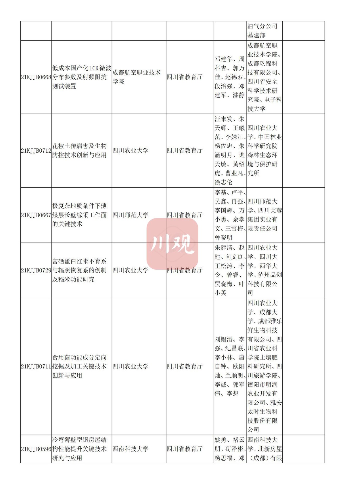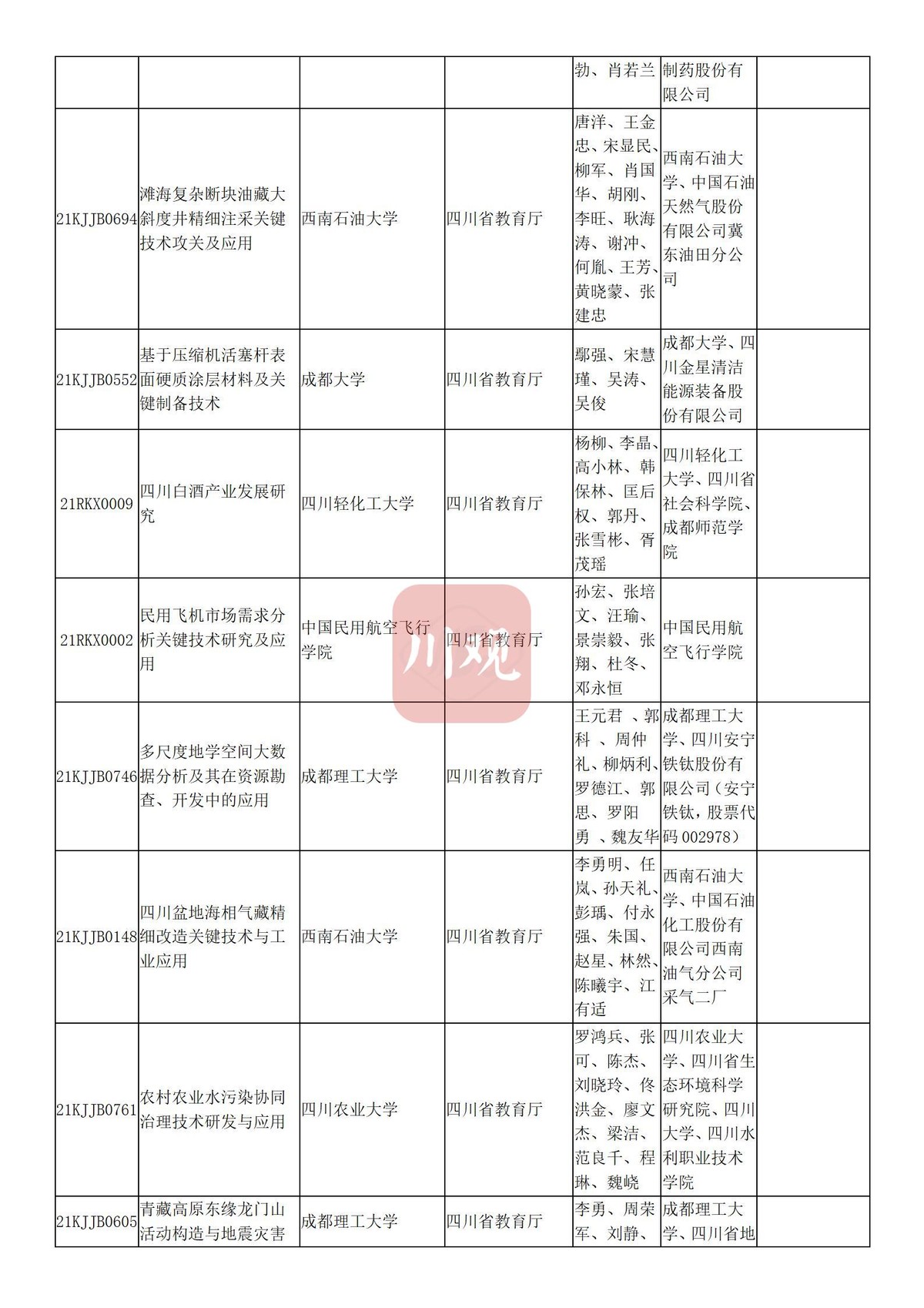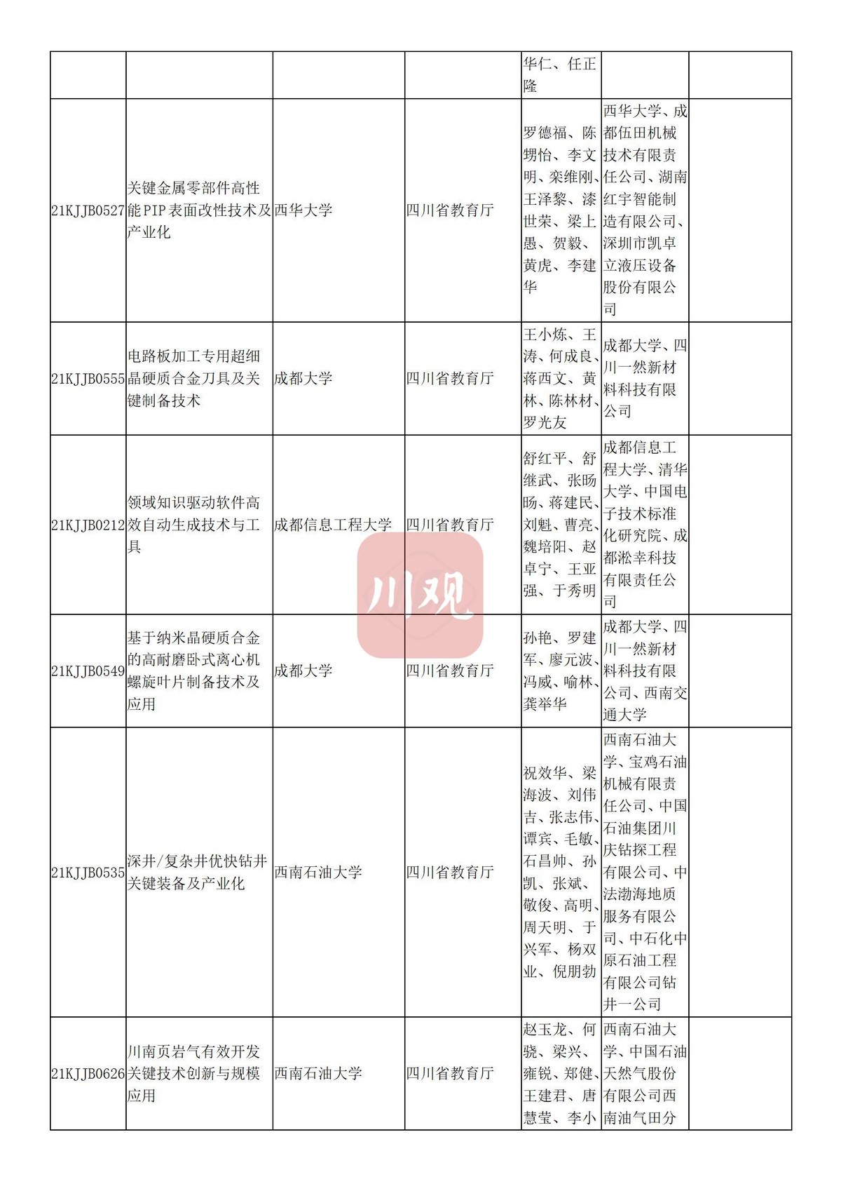 川观新闻记者6月3日从四川省教育厅获悉,根据科技厅《关于2021年度四川省科学技术奖提名工作的通知》要求,经组织所属高校推荐,教育厅拟提名119个项目(人选)参加2021年度四川省科学技术奖励评审,其中:科技杰出贡献奖1名、杰出青年科学技术创新奖5名、科技进步奖自然科学类23项、科技进步奖技术发明类4项、科技进步奖科技进步类84项、科技进步奖国家科技合作类2项。