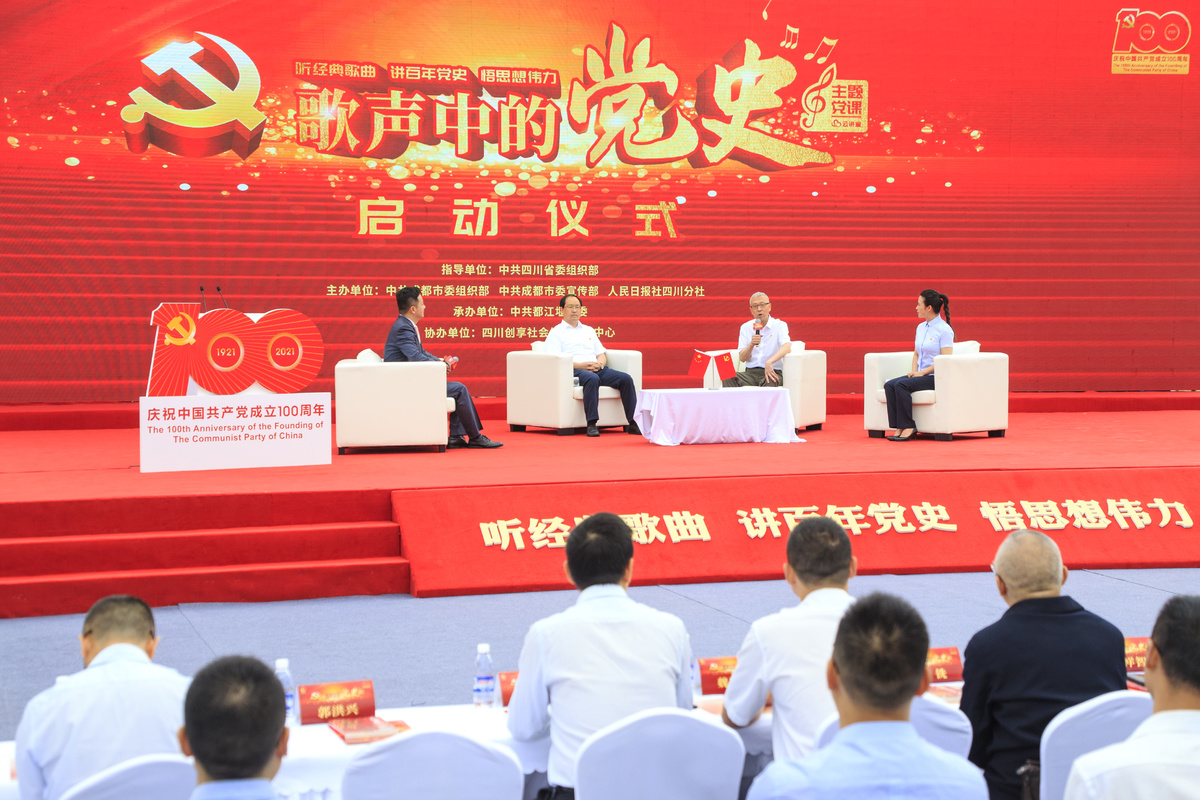 谢祥智介绍说,主题党课·云讲堂以“百年百歌百党课”为主线,将精选100首代表性强、传唱度高的经典主旋律歌曲,深入挖掘其时代背景和党史内涵,邀请党史专家、本土讲师、基层党组织书记等讲述歌曲背后的党史故事;另外,精心遴选100个公园城市示范区重要场景,让广大党员在沉浸式课堂中看蓉城变化、悟思想伟力;同时,线下组织各领域基层党组织高质量策划举办100场“歌声中的党史”主题党课,线上同步制作推出100期“歌声中的党史”主题党课电视节目,实现“云端”同讲同学,持续推动新思想新理念走深走实、入脑入心。
