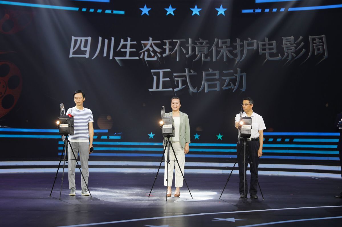 为推广公益环保理念,让更多人参与到生态环境保护事业中来,四川省首次策划环保电影周活动。著名演员雷汉来到现场助阵,他说,希望出现越来越多的环保主题电影,可以警醒、鼓励大家重视环保。随后,峨眉电影集团董事长韩梅、生态环境厅总工程师赵乐晨上台,与雷汉共同按下摄影机的开机键,“美丽中国,我是行动者——绿动生活 影像四川”环保电影周活动正式启动!