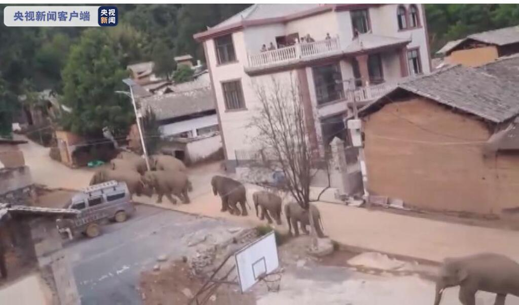 6月3日,云南昆明。北迁象群继续沿晋宁区双河乡向北偏西迁移9公里,持续在该乡活动。当地投喂3.6吨象食,减少人象遭遇,及时发布预警信息,确保人象安全。