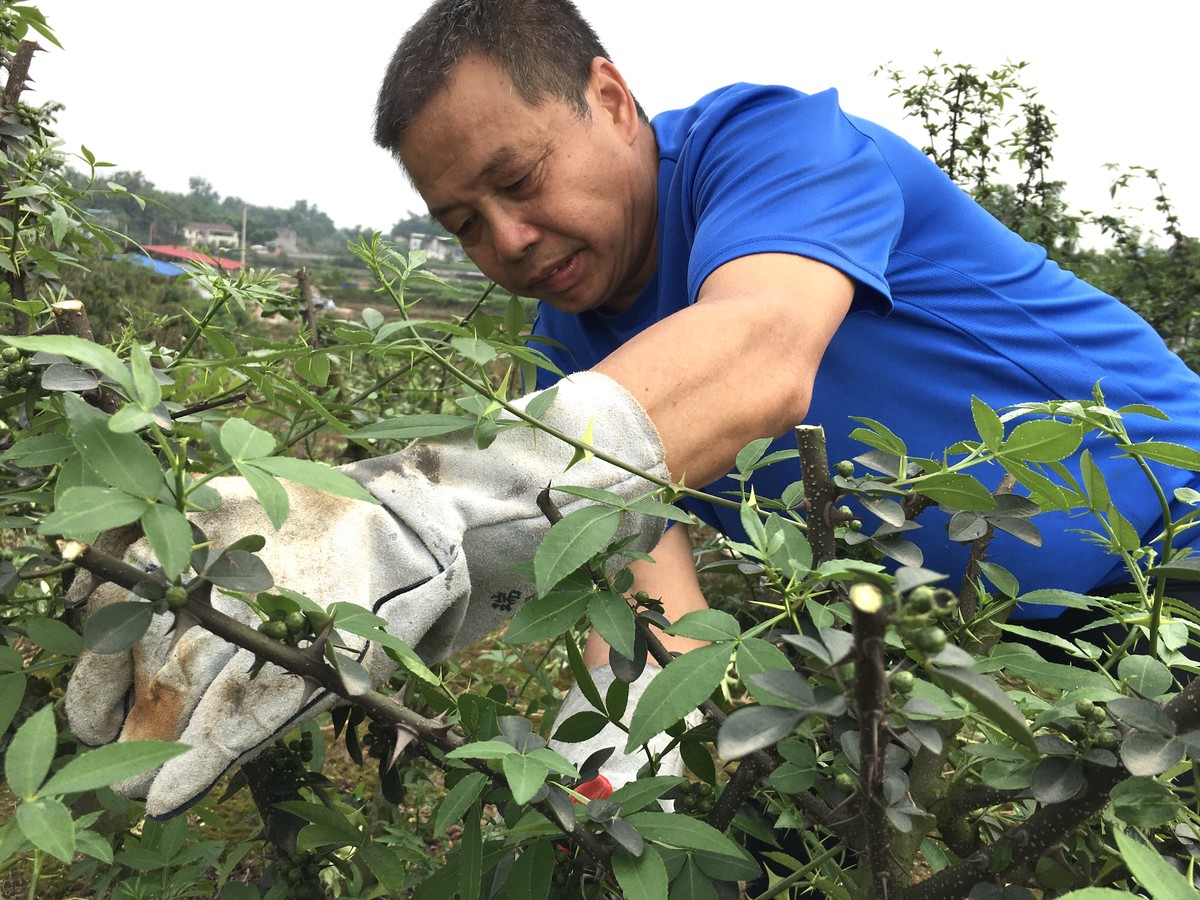“九叶青花椒在我国栽培历史悠久,产量大、价值高,可用来生产食用调料、香料、油料、药材及保健品化妆品等多种产品。”叶顶洪一边介绍一边快速地剪下花椒枝,他语速飞快、动作麻利,但在修枝的环节格外细心。