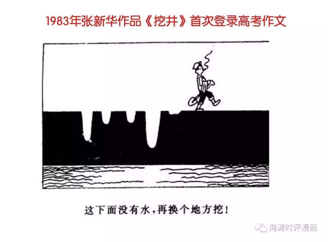 根据漫画《这下面没有水,再换个地方挖》,写一段300字以内说明文字;写一篇议论文,800字以内。