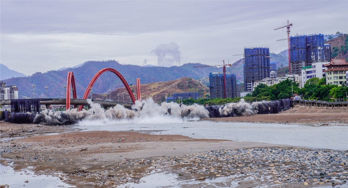 据介绍,安宁河一桥的拆除,采取的是延时爆破方法,不对桥进行整体爆破,而是通过对桥梁关键点和支撑点爆破,桥梁失去稳定后自行垮塌,分离解体。同时,在爆破过程中,采取了三层防护控制飞石,并设立了300米的安全警戒区域,确保了爆破安全。