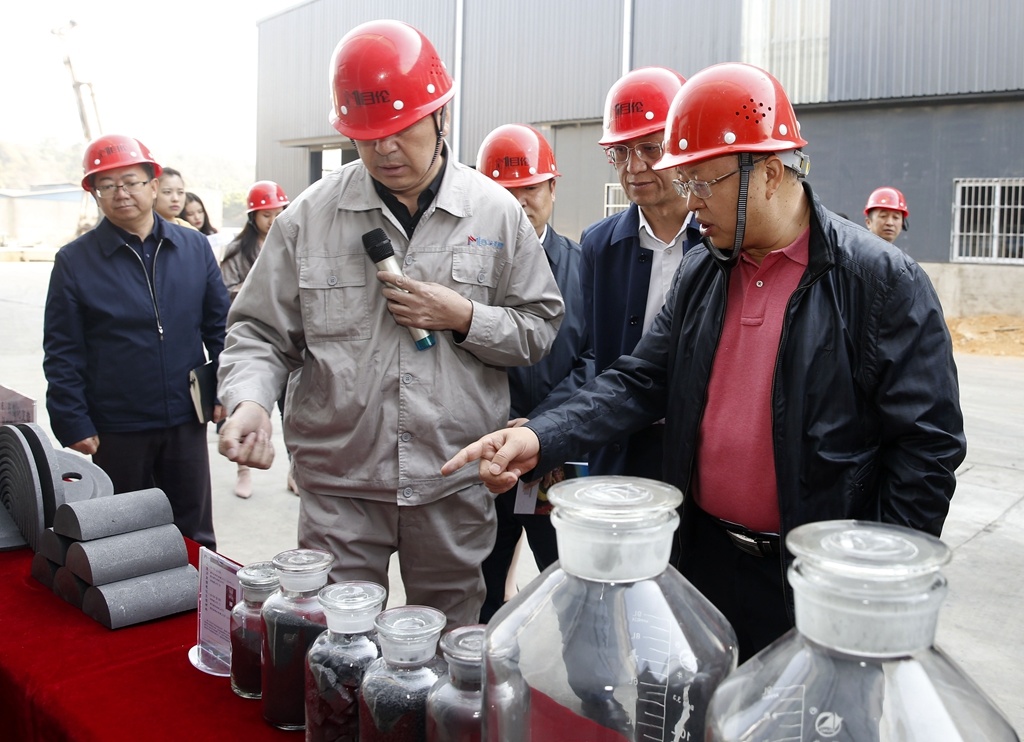 2019年2月14日,罗军(右一)调研目伦新材料项目生产情况