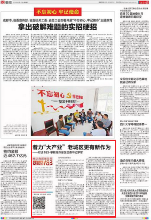 罗军:去年,省委十一届三次全会对攀枝花提出了“3+2”的发展新定位和新要求。攀枝花明确了“一二三五”总体工作思路。东区相应地提出了“一二三四五”工作思路:“一个愿景”,就是要建设美丽时尚幸福康养花城,彰显阳光、时尚、活力的城市气质。 “两篇文章”,即持续做好“钒钛、阳光”两篇文章,守住“发展、绿色”两条底线。“三项工作”是指重点抓好招商引资、创新驱动、改革开放三项工作,推动经济高质量发展。这是根据东区现在发展的短板提出来的,比如招商引资,是发展的后劲和潜力、产业转型和城市品质提升的抓手。 “四大任务”,着力在发展大产业、建设大城市、培育大数据、抓好大党建上下功夫,不断为发展注入新动力新活力。“五条路径”,以加快建设“钒钛战略资源创新开发核心区”“阳光康养特色产业示范区”“川西南滇西北区域中心城区”“四川南向开放门户主体功能区”和“基层社会治理先行区”为抓手,全面提升城市集聚力辐射力带动力。